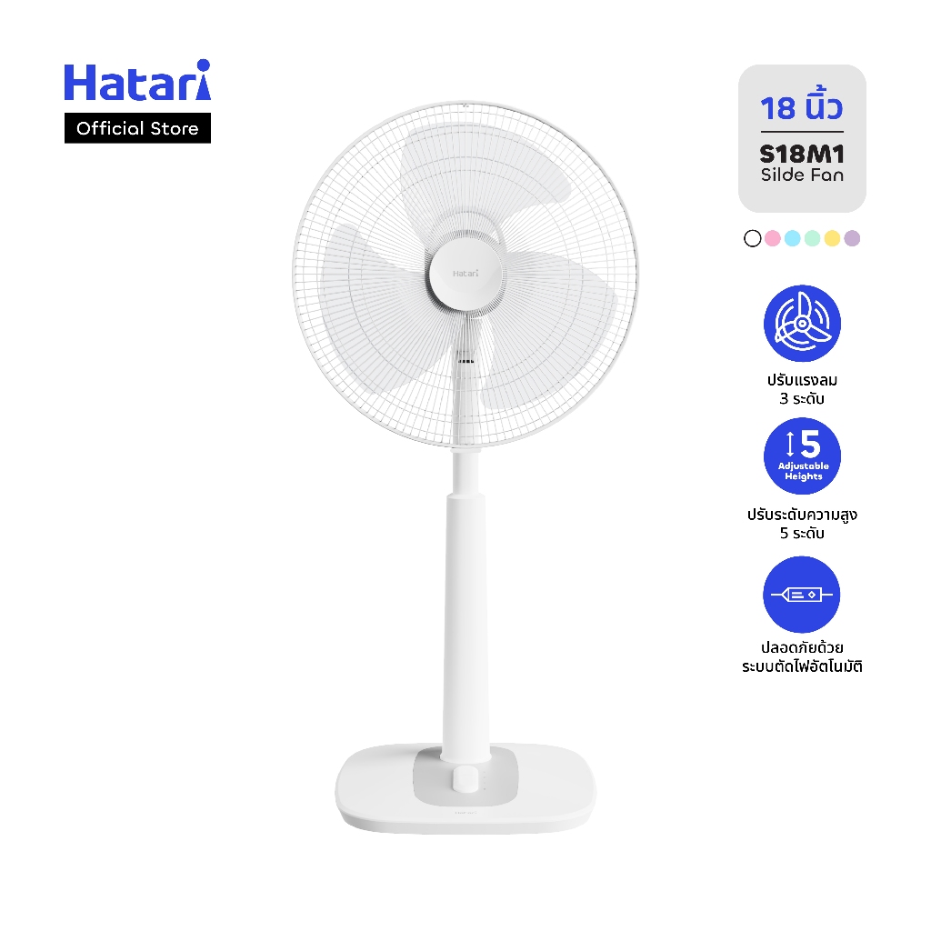 พัดลมปรับระดับ Hatari รุ่น S18M1 คือความพรีเมียมของเครื่องใช้ไฟฟ้าคู่บ้านคนไทยจริงๆ ครับ ขนาดใบพัด 18 นิ้วที่มาพร้อมระบบรองลื่นลูกปืน (Ball Bearing) ช่วยให้ทำงานได้เงียบและมีประสิทธิภาพสูง ไฮไลท์พรีเมียมคือการปรับระดับความสูง-ต่ำได้ถึง 6 ระดับและกระจายลมได้สม่ำเสมอทั่วห้อง มั่นใจในความปลอดภัยด้วยระบบ Thermal Fuse ตัดไฟอัตโนมัติเมื่ออุณหภูมิมอเตอร์สูงผิดปกติ ได้รับมาตรฐานฉลากประหยัดไฟเบอร์ 5 และรับประกันมอเตอร์ยาวนานถึง 3 ปี ดีไซน์เรียบหรูสีสันสวยงามเข้ากับทุกการตกแต่ง คุ้มค่าและพรีเมียมพรีเมียมจริงๆ ครับ