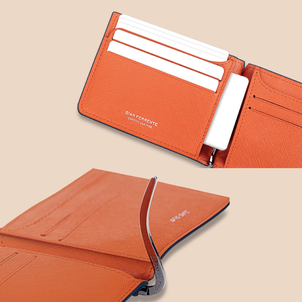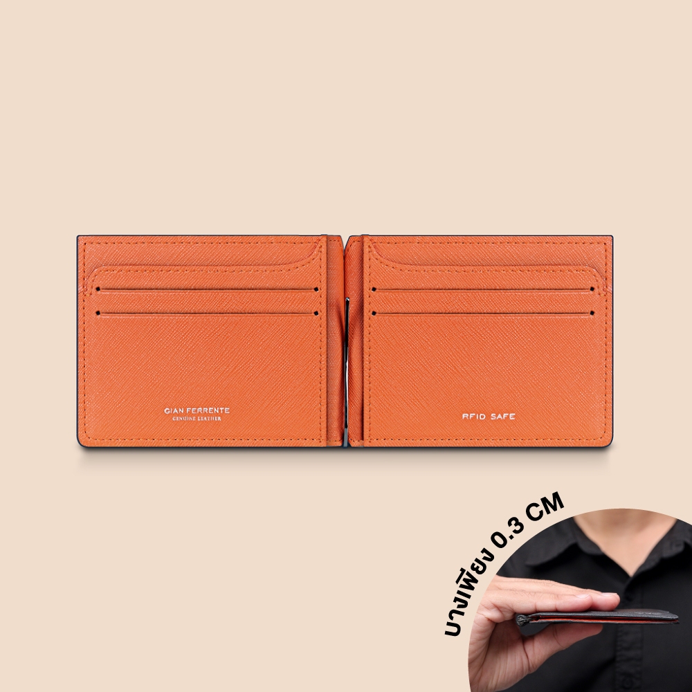 Gian Ferrente Saffiano Slim Clip Wallet กระเป๋าสตางค์มีคลิปหนีบ ลายซาเฟียโน่ หนังไมโครไฟเบอร์