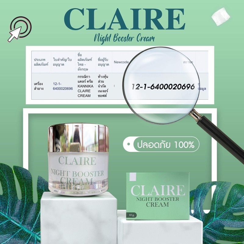 แคลร์ ครีมบำรุงผิวหน้า ครีมบำรุงผิวกลางคืน สกินไวน์เทนนิ่งไนท์ครีม Clairenight booster cream