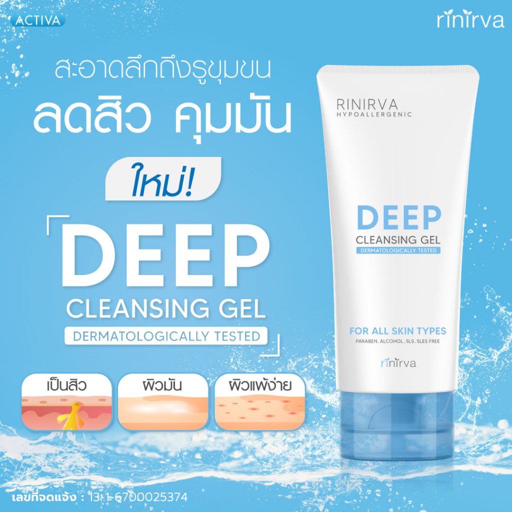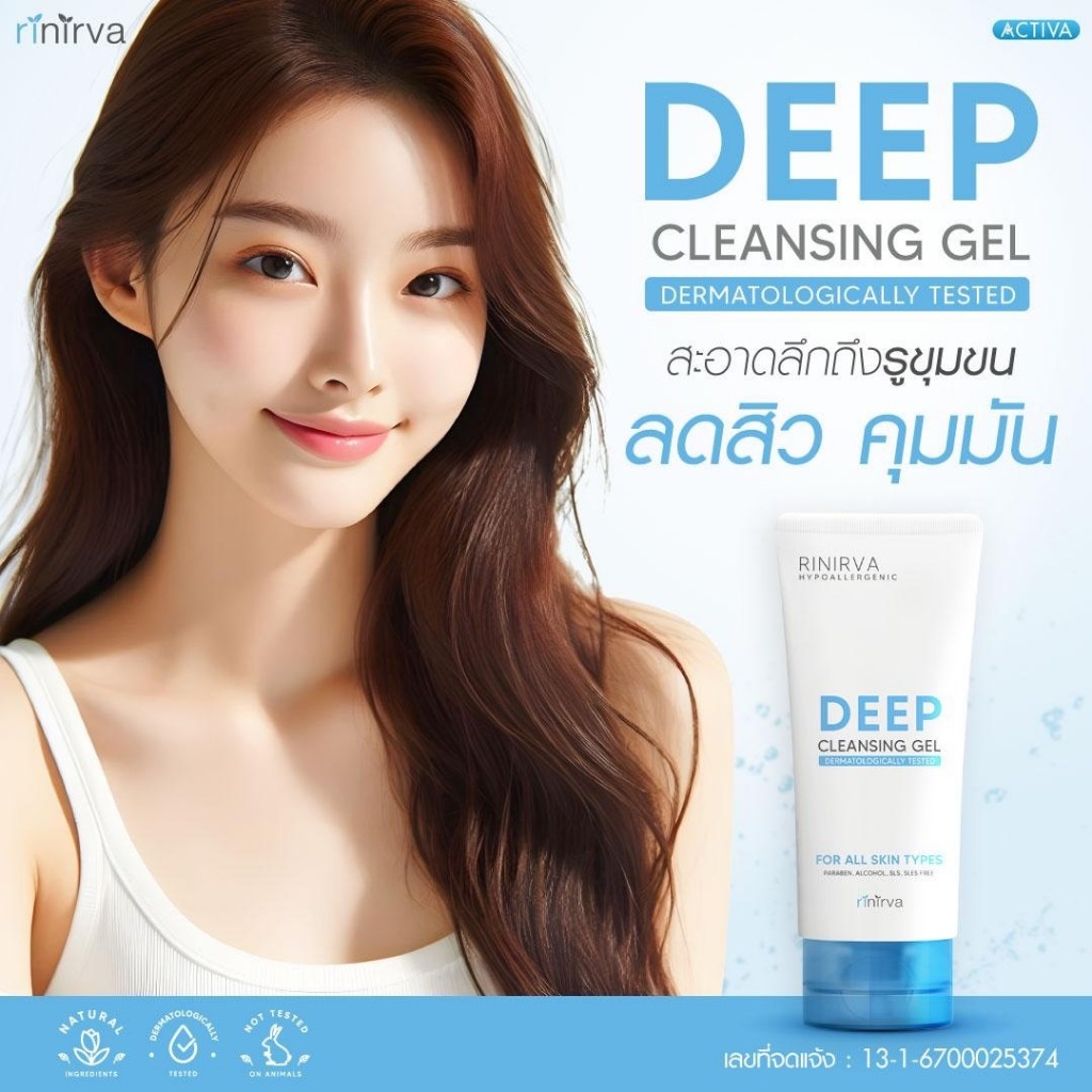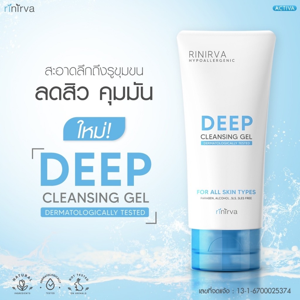 [1 หลอด] Rinirva Deep Cleansing Gel ริเนอร์ว่า ดีพ คลีนซิ่ง เจลล้างหน้าสูตรอ่อนโยน ผิวชุ่มชื้น ล้างสะอาดแบบไม่เอี๊ยด