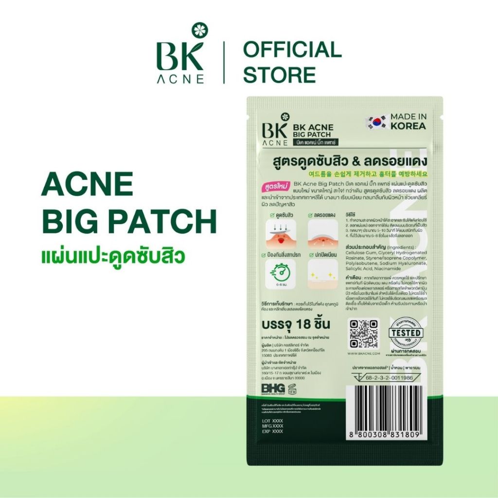 BK ACNE Big Patch แผ่นใหญ่สะใจ สิวไหนก็ไม่รอด ช่วยดูดซับสิว ลดรอยแดง บรรุจุ 16ชิ้น (แผ่นใหญ่ 4ชิ้น แผ่นเล็ก 12ชิ้น)