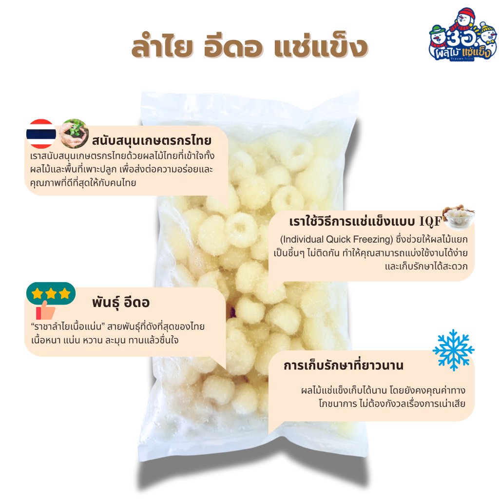 ลำไย แช่แข็ง 1 กก. | พันธุ์อีดอ Frozen Longan