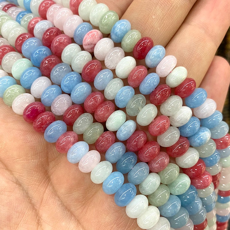LUOMAN XIARI Spot 8 มม.Rondelle หยกสีเขียวธรรมชาติ Agate Labradorite Rhodochrosite หินลูกปัดสําหรับเครื่องประดับทํา DIY สร้อยคอสร้อยข้อมืออุปกรณ์เสริมประมาณ 36-38 ซม.