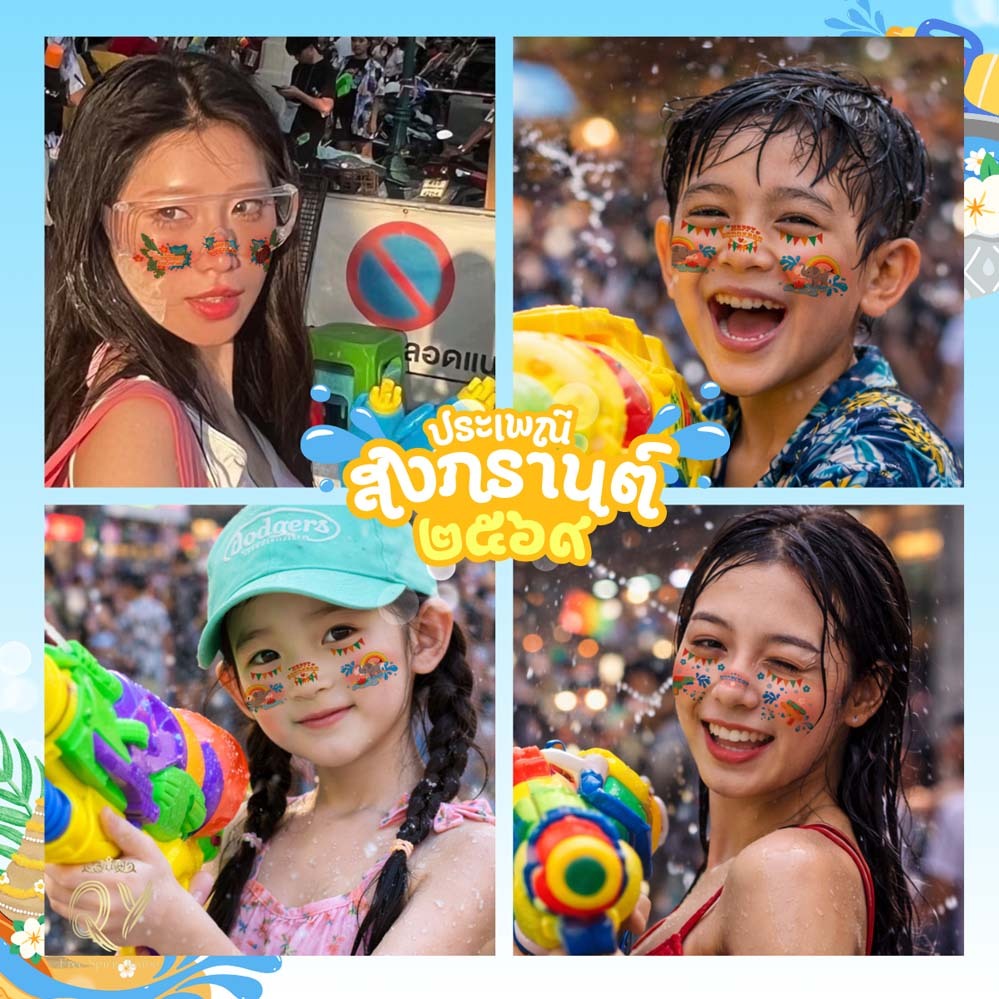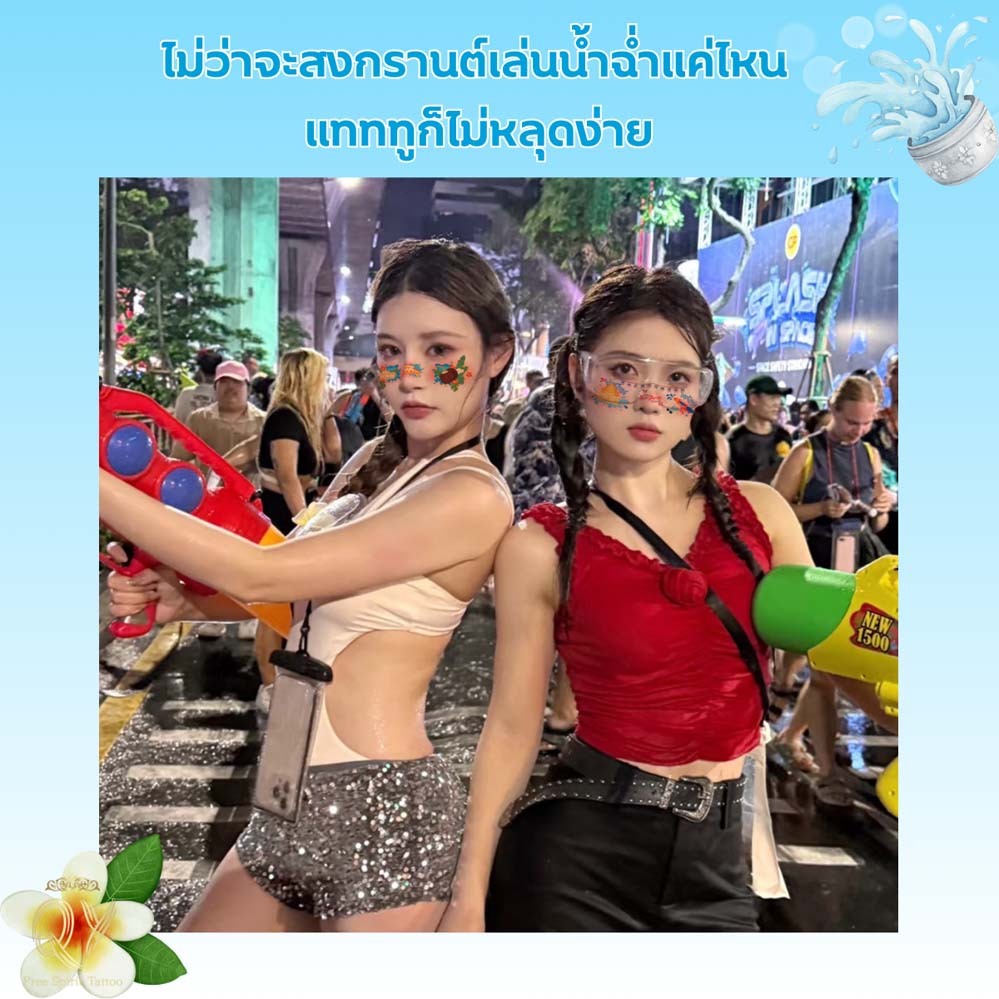สติกเกอร์รอยสักชั่วคราวสงกรานต์ กันน้ำ ลายน่ารัก ไม่ระคายผิว เด็กและผู้ใหญ่ฮาวาย face sticker สติกเกอร์แต่งหน้าสงกรานต์