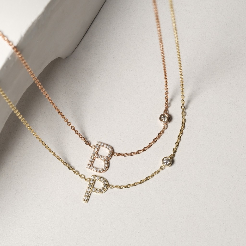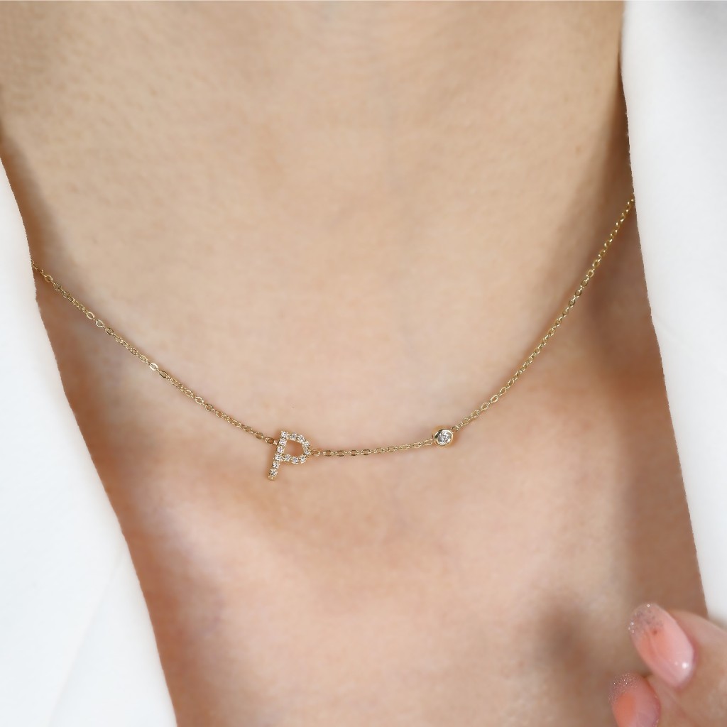 สร้อยคอทองแท้ 9K Initial P Diamond Necklace