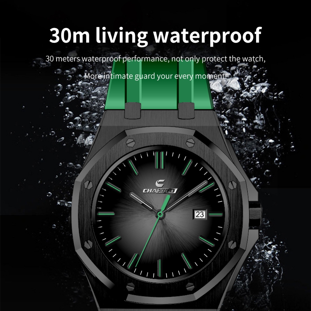 Chaxigo นาฬิกาผู้ชาย กันน้ำ 100% ดีไซน์พรีเมียม หน้าปัดสี่เหลี่ยม สายซิลิโคน เรืองแสง แสดงวันที่ สไตล์สปอร์ต พร้อมส่ง 7690-2songkran