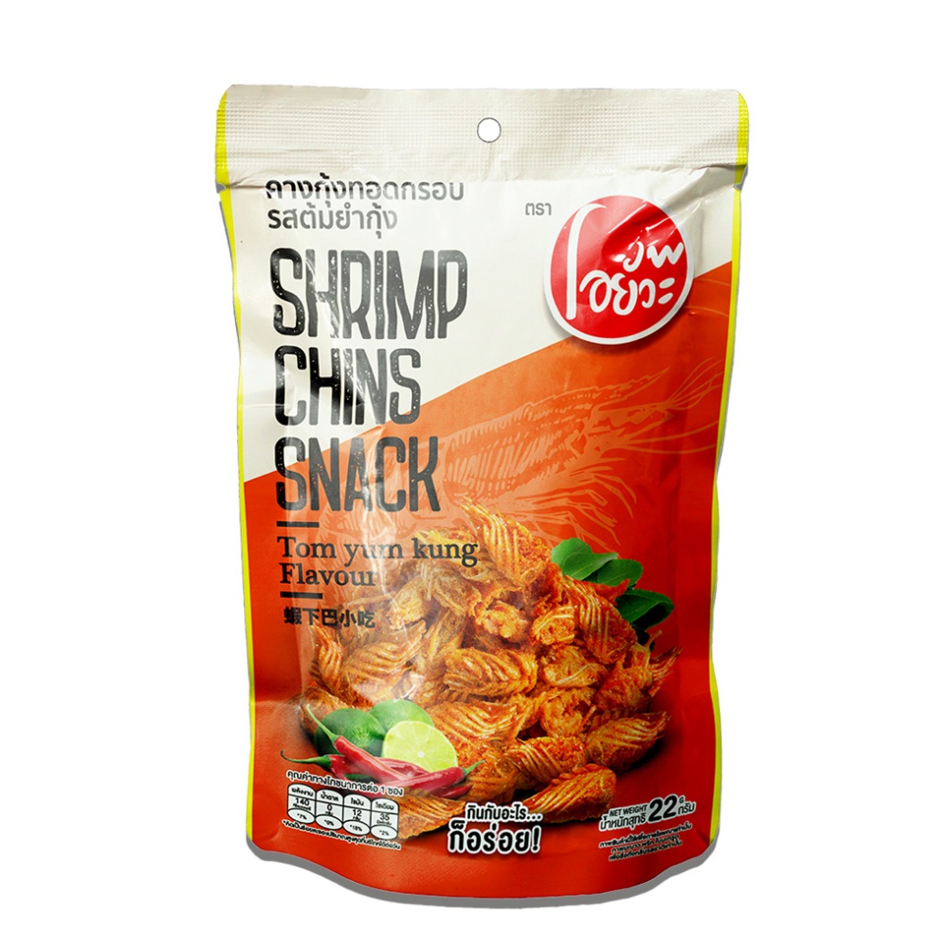 O-YUA โอยั๊วะ คางกุ้ง ทอดกรอบ 22g. รสต้มยำกุ้ง 1 ซอง กับแกล้ม แสนอร่อย เข้มข้น กรอบอร่อย มีฮาลาล อิสลามทานได้