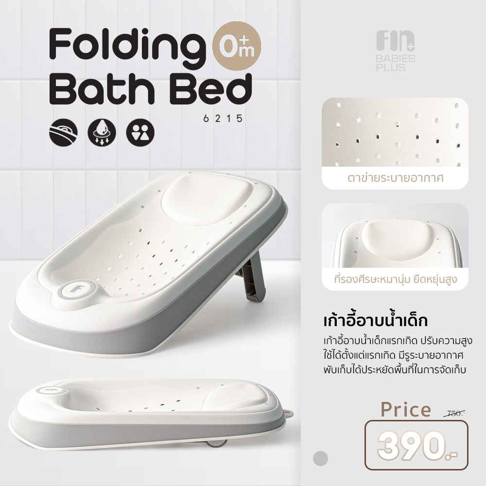 FIN เบาะรองอาบน้ำเด็ก รุ่น 6215 เก้าอี้อาบน้ำเด็กแรกเกิด ปรับความสูงได้ 3 ระดับ รับน้ำหนักได้ 20 kg.