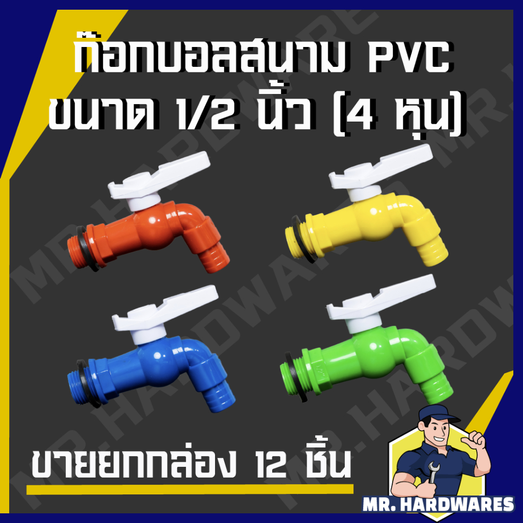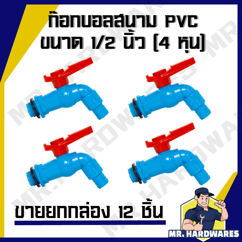 (ขายยกกล่อง 12 ชิ้น) ก๊อกบอลสนาม PVC ขนาด 1/2" (4 หุน) รวมทุกแบบ ก๊อก ก๊อกน้ำ ก็อก ก็อกน้ำ ก็อกสนาม