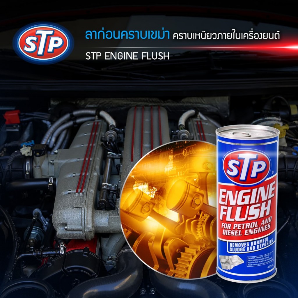 ส่งฟรี STP น้ำยาทำความสะอาดภายในเครื่องยนต์ เบนซิน ดีเซล Engine Flush 450 มล.