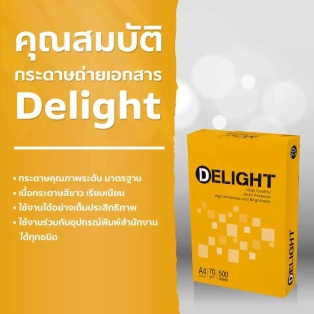 Delight กระดาษถ่ายเอกสาร 70 แกรม ขนาด A4 500 แผ่น สีขาว 1 รีม