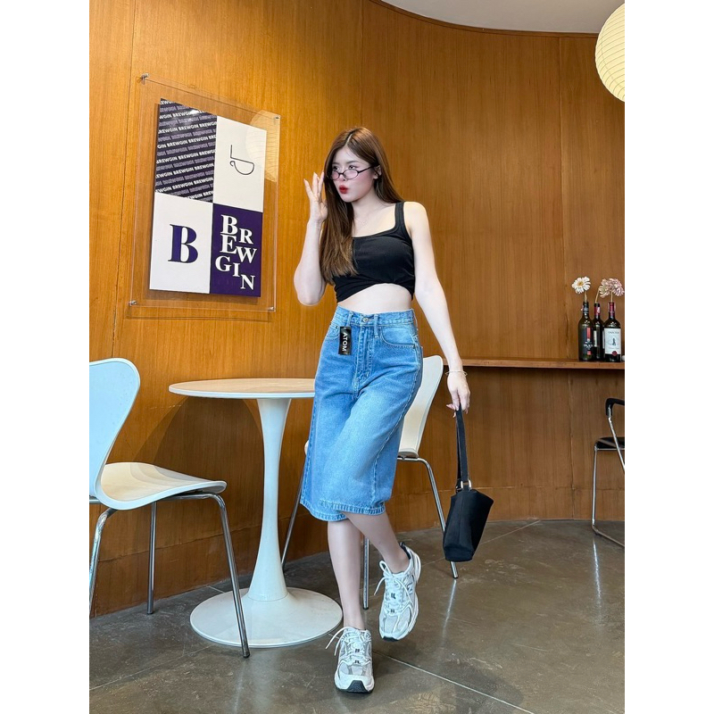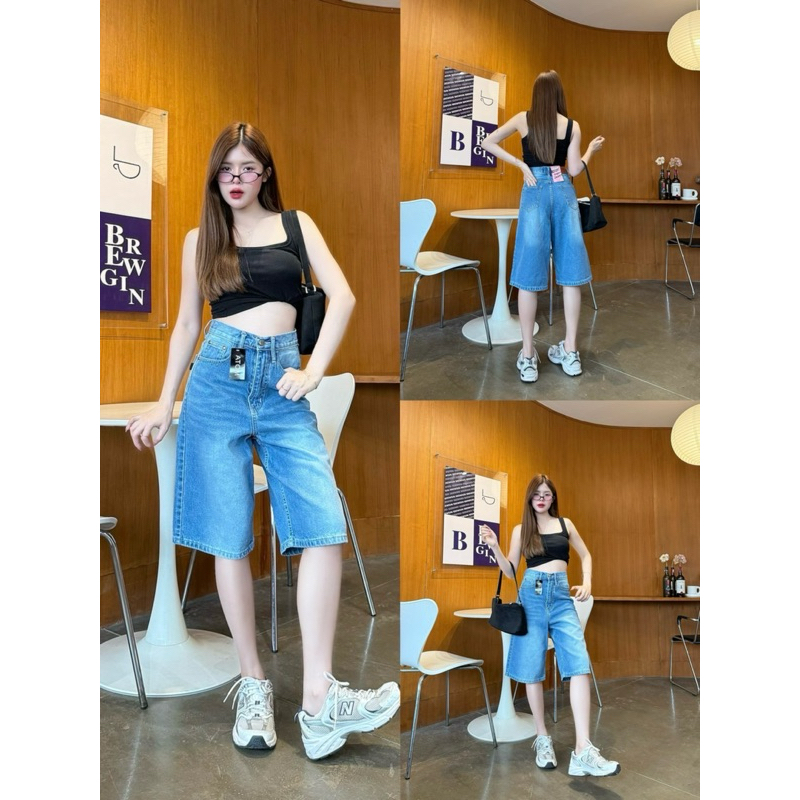 (S-XL) กางเกงยีนส์สามส่วน Atom jeans (3001)