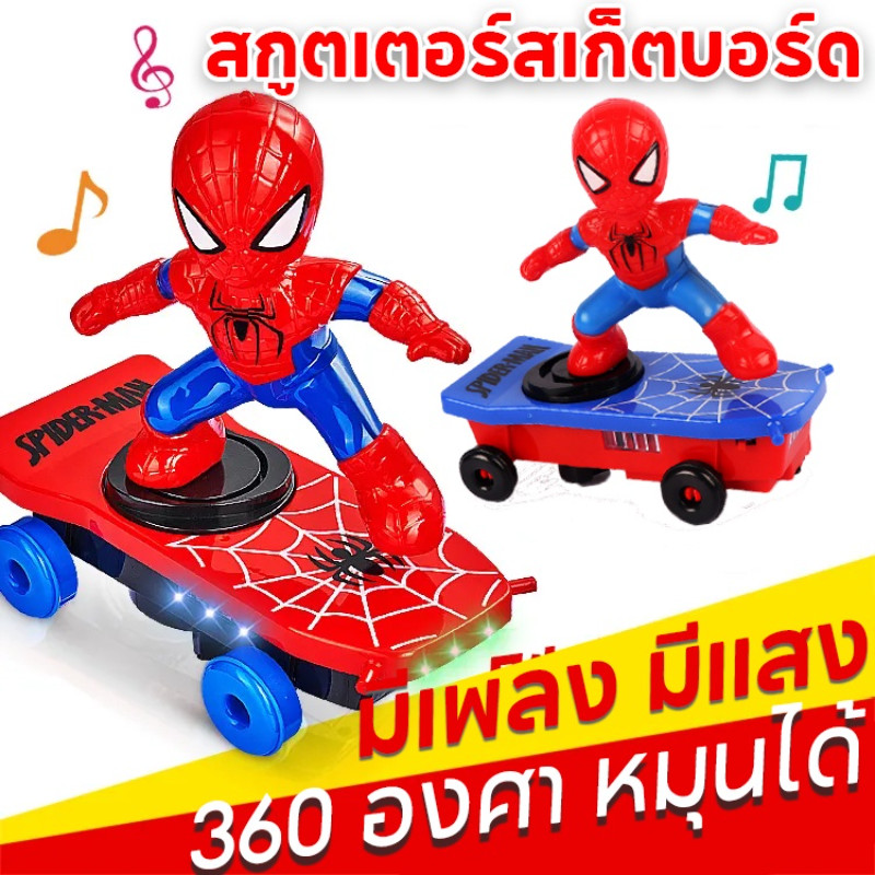 BHQ สไปเดอร์แมน สกูตเตอร์สเก็ตบอร์ด 360 องศา หมุนได้ ของเล่นสําหรับเด็ก มีเพลง มีแสง