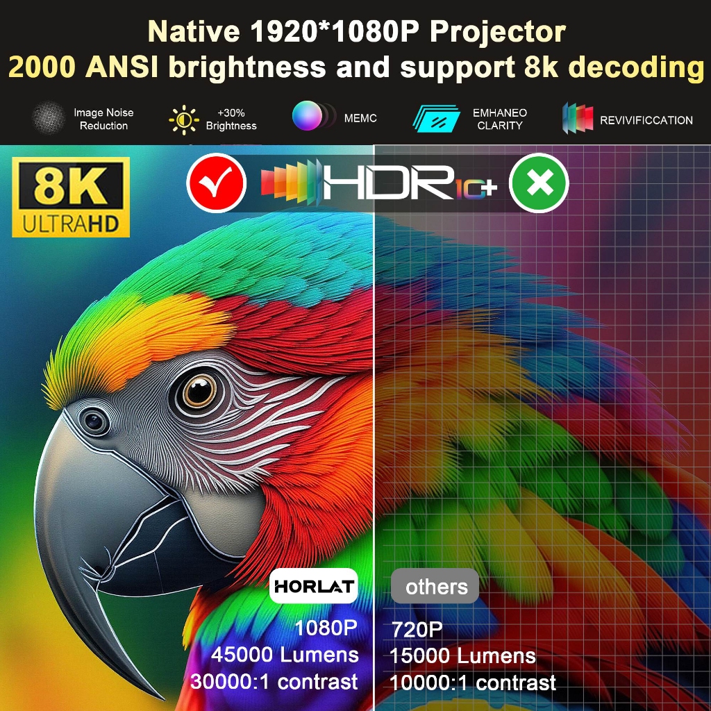 HORLAT T10 Ultra 8K Laser โปรเจคเตอร์ HighBright 40000LM Google TV Voice control 20W Dolby เสียง 360°ขาตั้งขาตั้ง