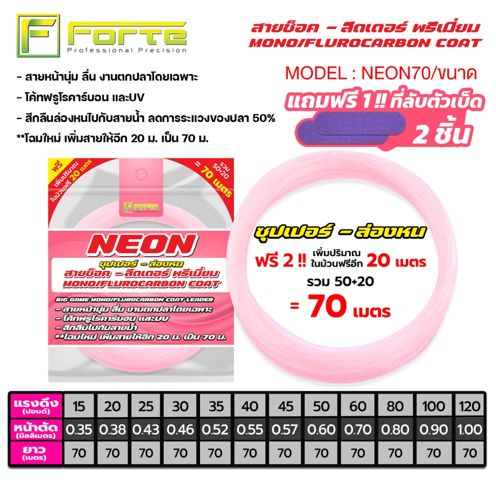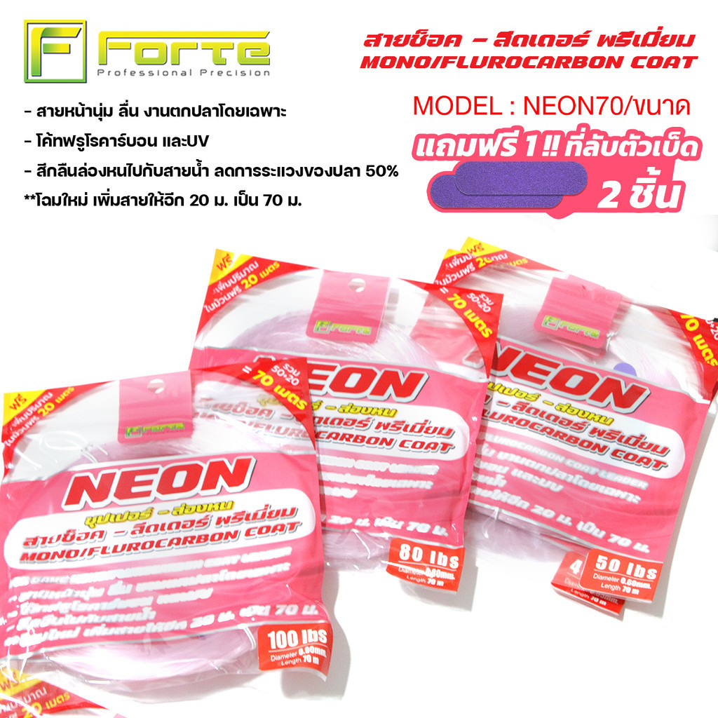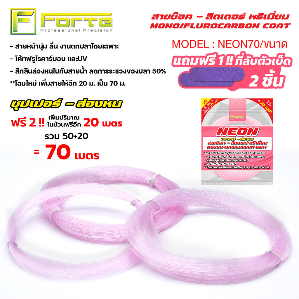 [1แถม3] นีออนสายช็อคลีด โค้ทฟลูโรแท้ เคลือบUV แถมความยาวในม้วนเพิ่มอีก 20m แถมที่ลับตัวเบ็ด 2 ชิ้น