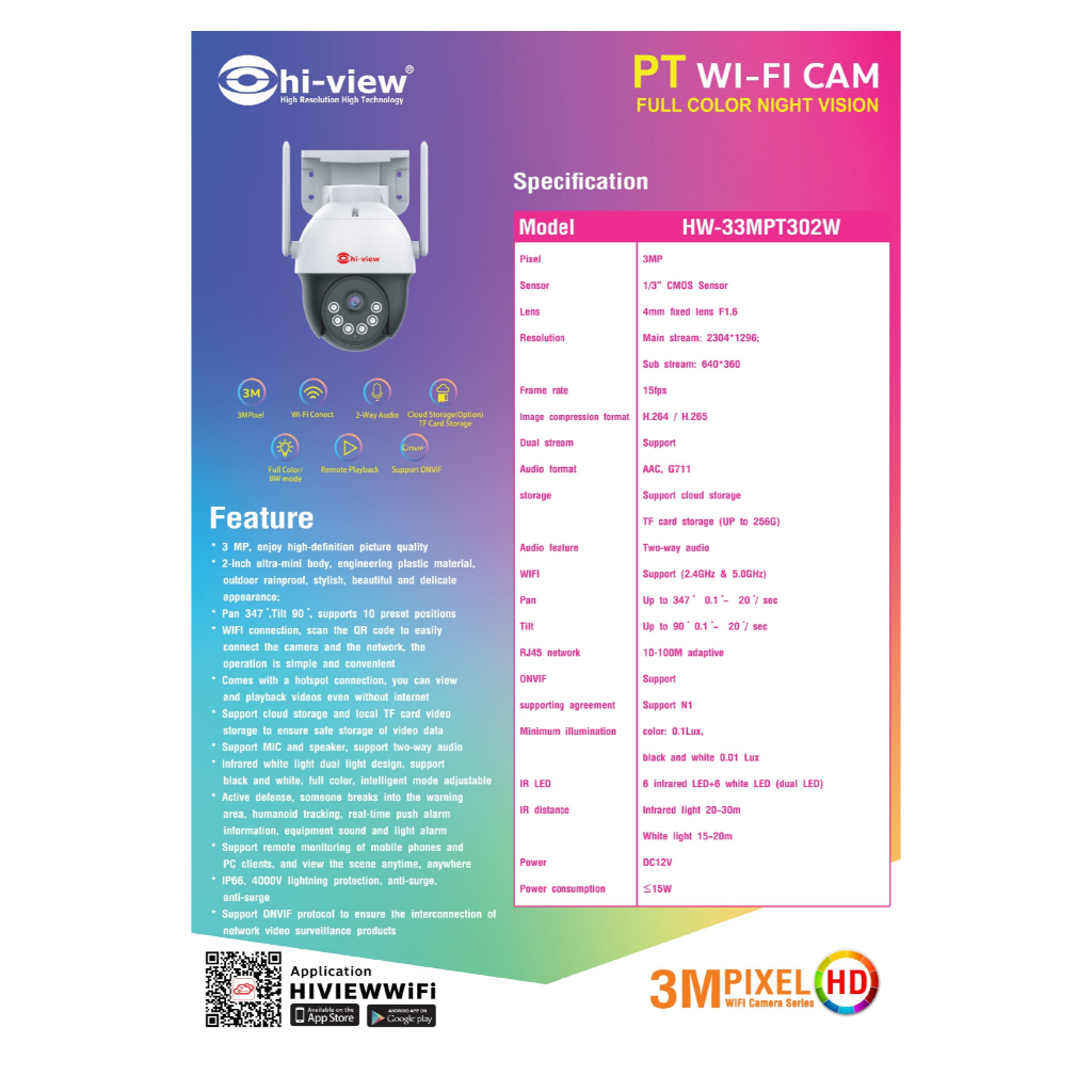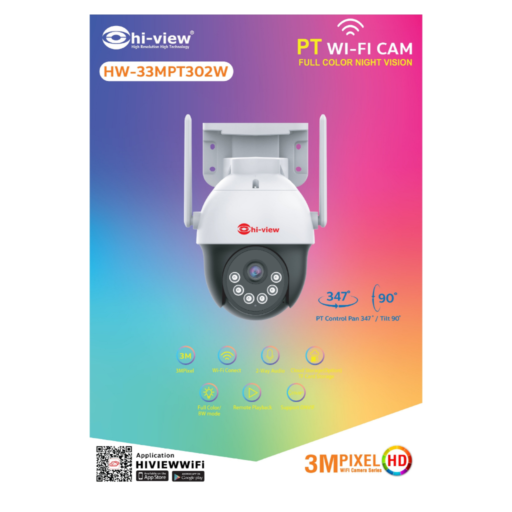 Hi-view กล้องวงจรปิด 3MP Ai รองรับ Wi-Fi 5G พูดคุยโต้ตอบได้ ภาพสี24ชม. HW-33MPT302W