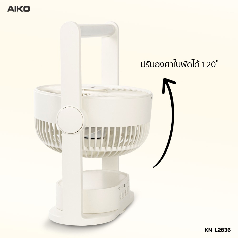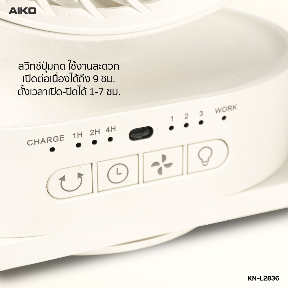 AIKO KN-L2836 พัดลมชาร์จไฟ ใบพัด 6 นิ้ว ชาร์จด้วย USB พัดลมพกพา พัดลมใช้แบตเตอรี่ โคมไฟในตัว ส่ายได้