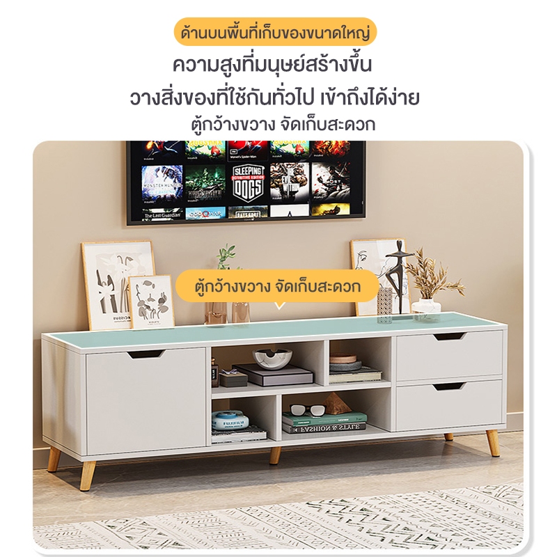 ALLE ตู้วางทีวีมีลิ้นชัก ความจุขนาดใหญ่ 4/4.5/5 ฟุต ห้องนั่งเล่นสีขาว/สีไม้/สีวอลนัท