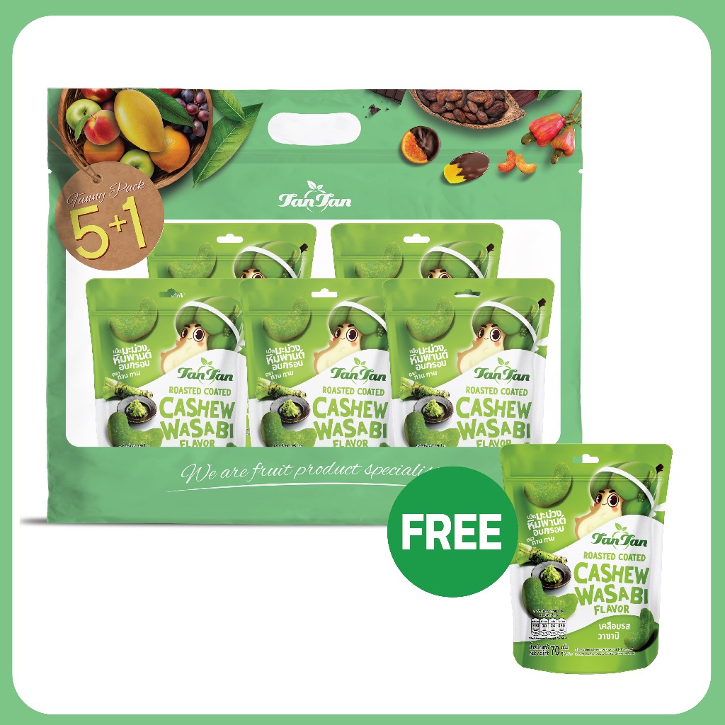เม็ดมะม่วงหิมพานต์อบกรอบ เคลือบรสวาซาบิ 5แถม1 "TAN TAN" Roasted Coated Cashew Wasabi Flavor Set5+1