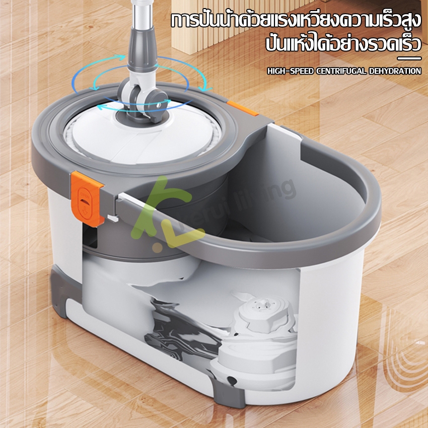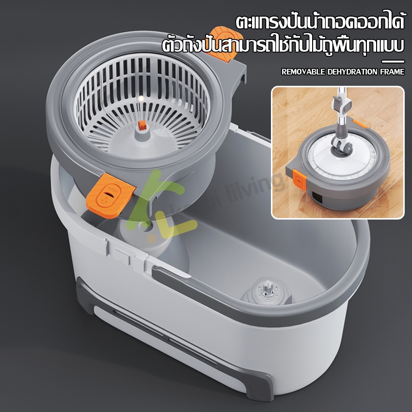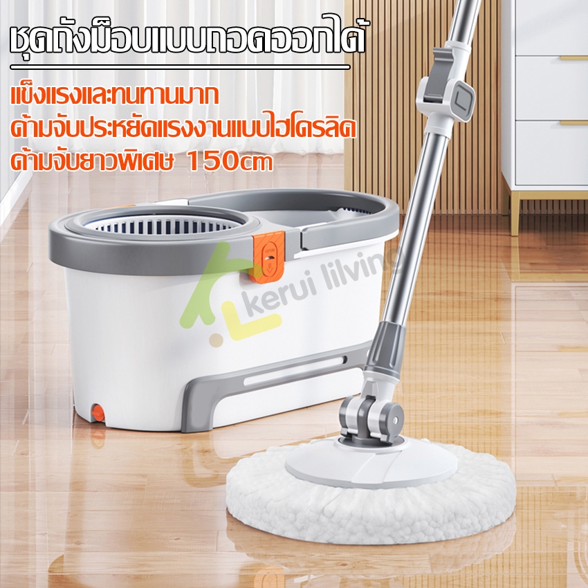 Allsking ไม้ถูพื้น ถังปั่น แถมผ้าม๊อบ ชุดถังปั่นม๊อบ รุ่นพลาสติก ชุดไม้ถูพื้น ไม้ม๊อบดันฝุ่น ถังปั่น ถอดออกได้