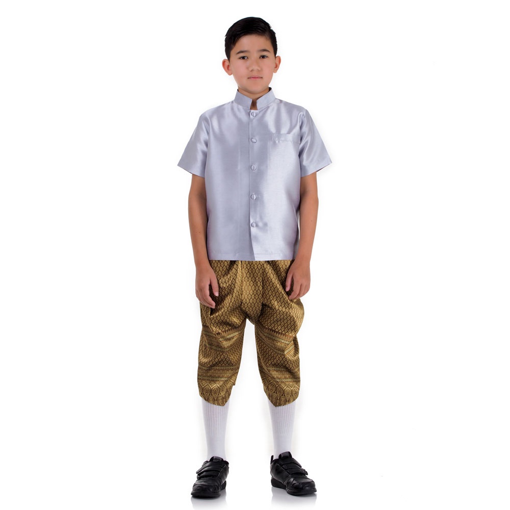 โจงกระเบนเด็กชายผ้าไหมเทียมเอวยางยืด