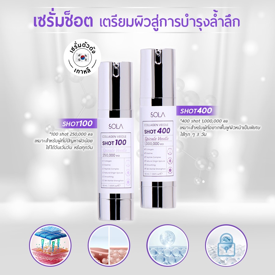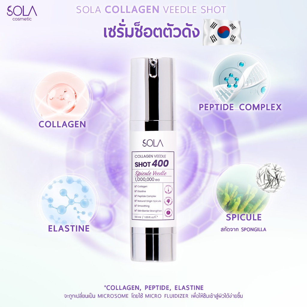 Sola - โซลา คอลลาเจน วีเดิ้ลช็อต 100 (shot) , 400 (shot) 50ml. เซรั่มเข็มเปิดผิว ริ้วรอย หลุมสิวตื้น