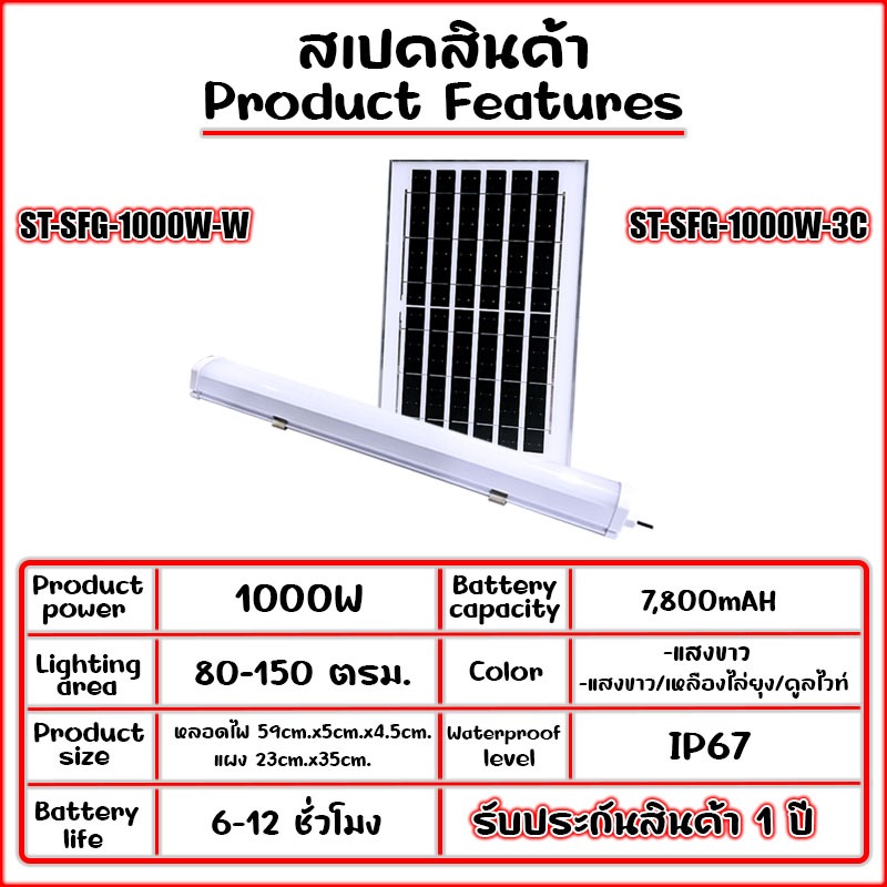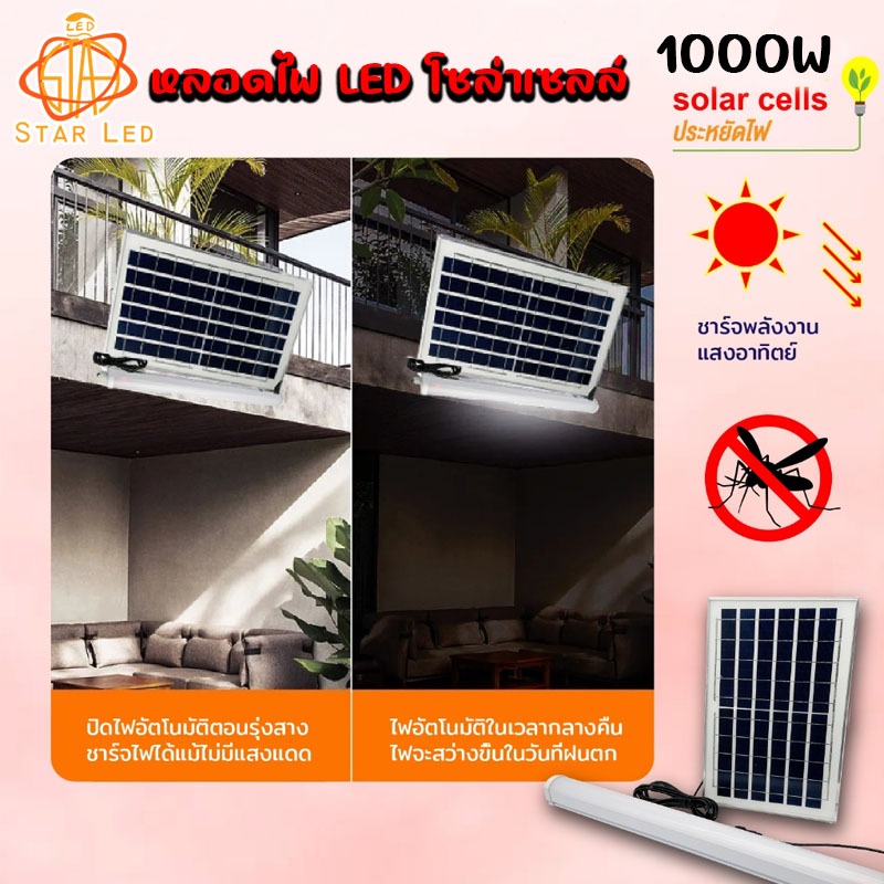 หลอดไฟนีออน led โซล่าเซลล์ รุ่น ST-SFG-1000W มีให้เลือก 2 แบบ แสงขาว กับ3แสง กันน้ำ solar cell