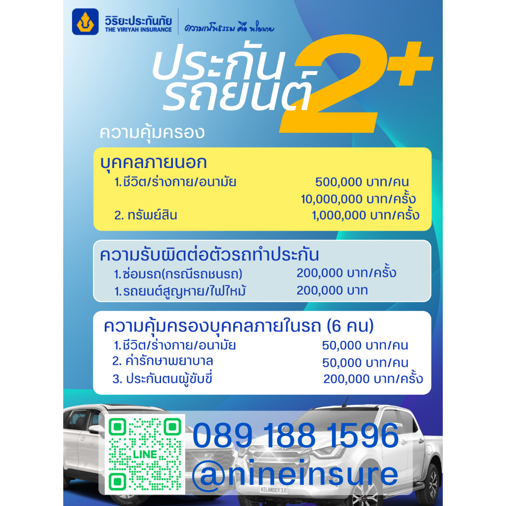 ประกันรถยนต์ วิริยะ 2+ อุ่นใจสบายกระเป๋า ทุน 200,000 บาท คุ้มครอง 30 วัน/724 บาท(รับรถ<20 ปี)