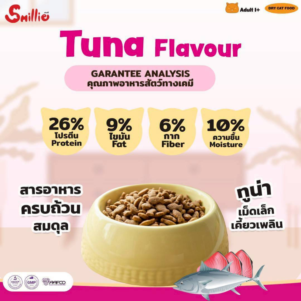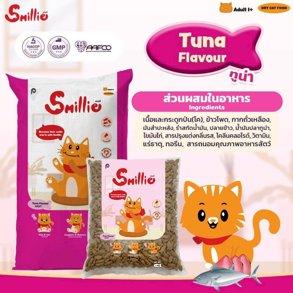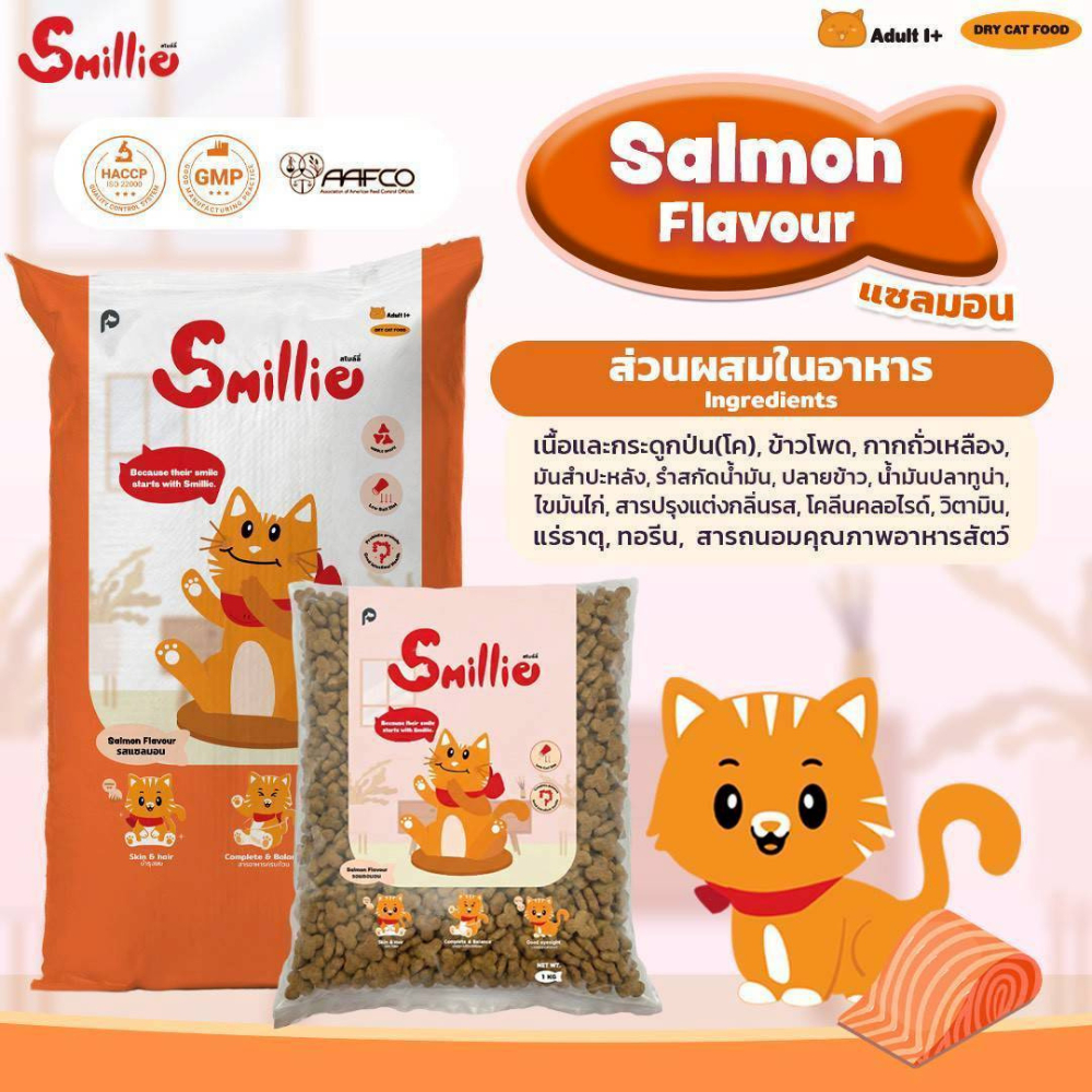 [ถุง 1kg] สไมล์ลี่ Smillie อาหารแมว รสแซลมอน รสทูน่า รสปลาทู สำหรับแมวโตทุกสายพันธุ์ โปรตีนสูงจากเนื้อสัตว์คุณภาพ
