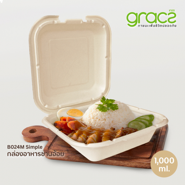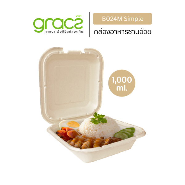 GRACZ เกรซ กล่องอาหาร 8นิ้ว 1000มล. B024 [แพ็ค 50 ชิ้น]