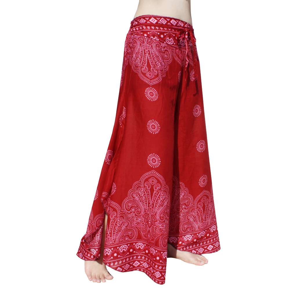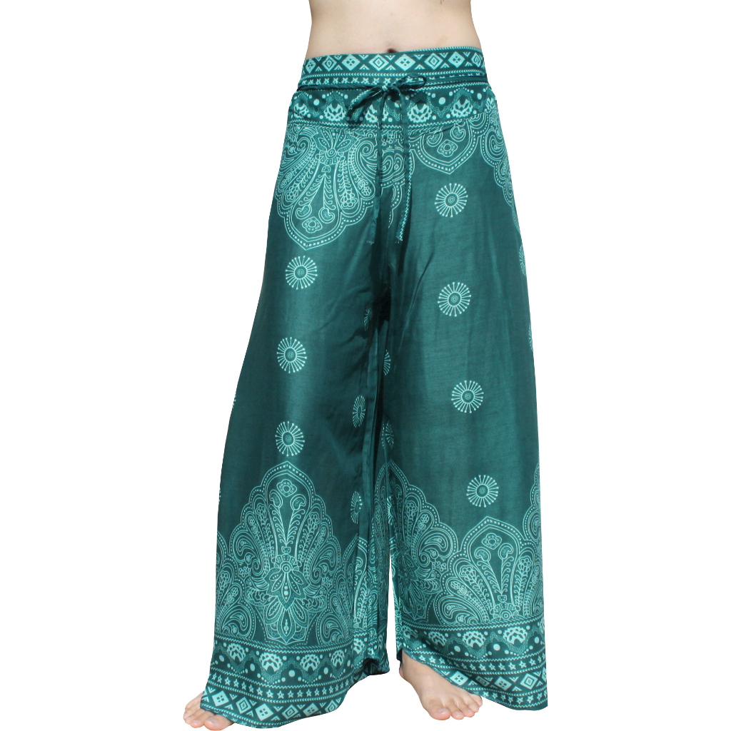 RaanPahMuang กางเกงขาบาน ผ้าเรยอน ลวดลายไทย อินเดีย ลายขนนก สวยงาม สีสด