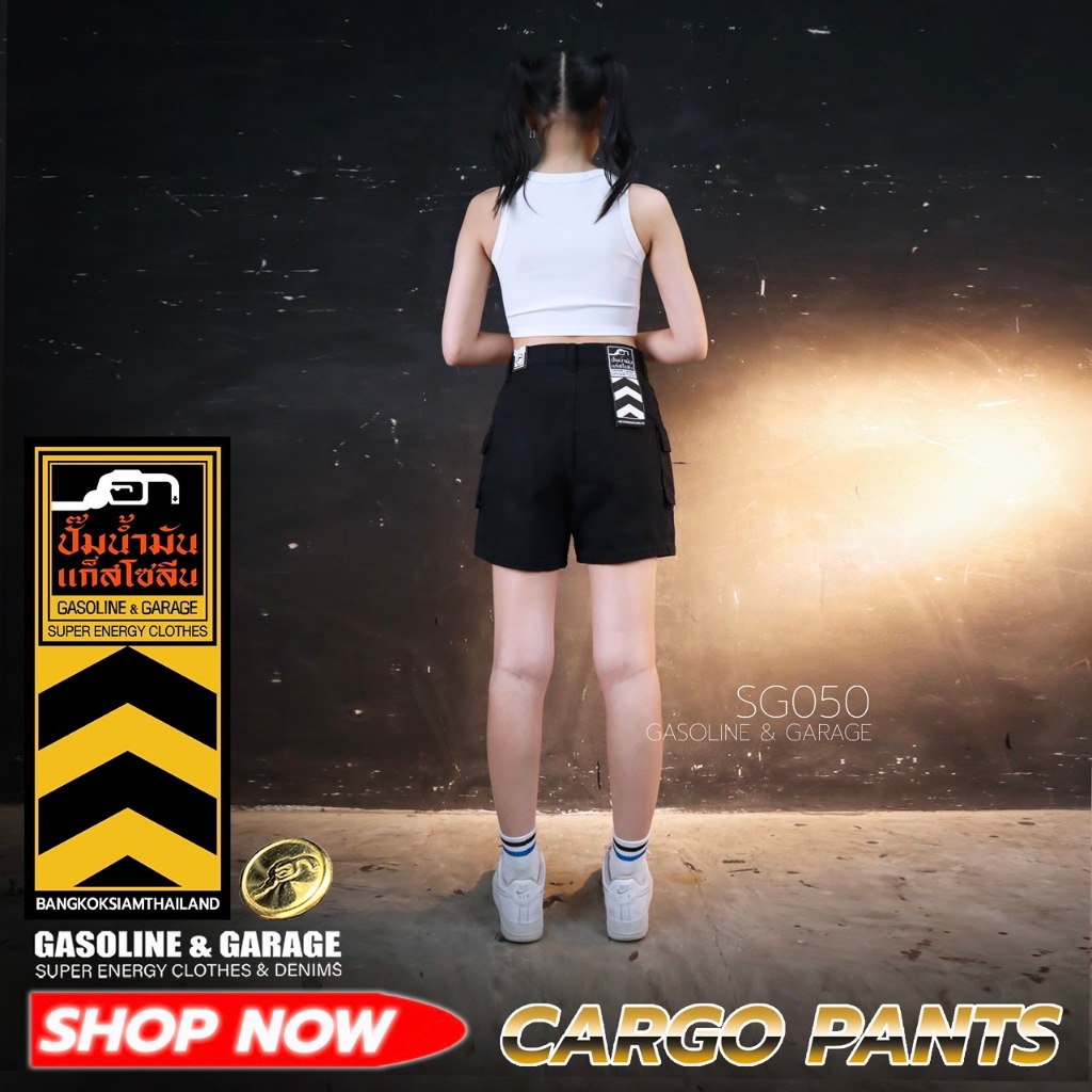SG050 กางเกงยีนส์ขาสั้น กระเป๋าคาร์โก้ สีดำ (Gasoline & Garage) ปั๊มน้ำมันแก๊สโซลีน (SG)