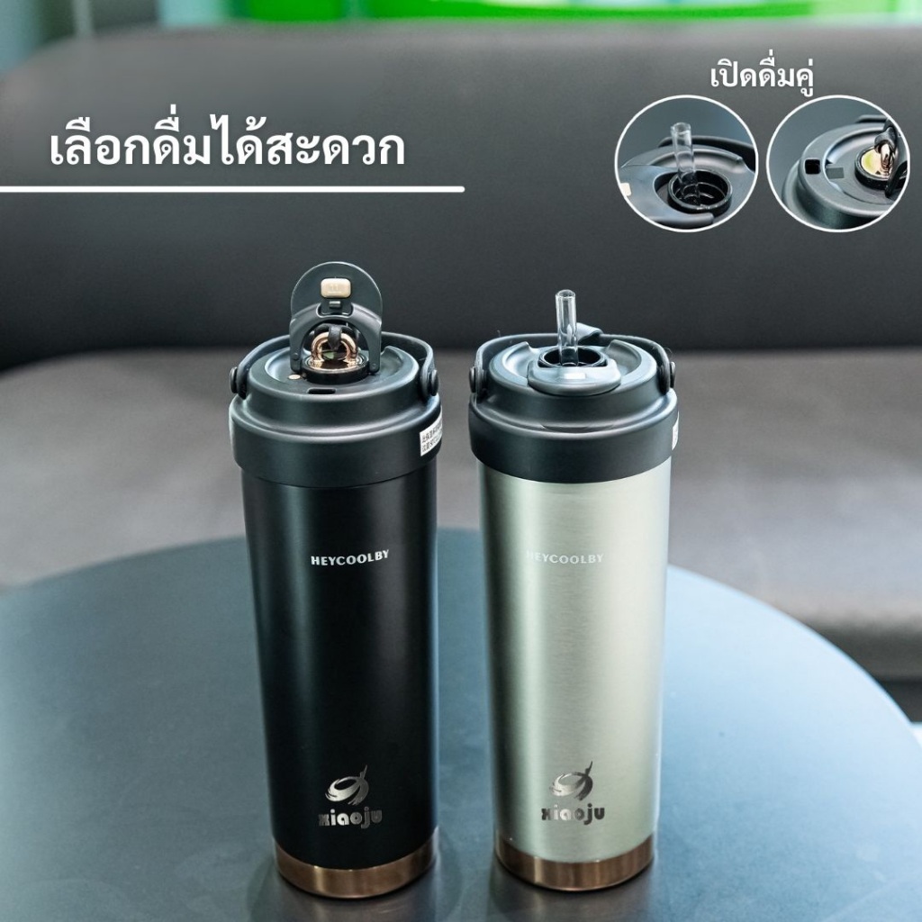 XIAOJU แก้วน้ำเคลือบเซรามิก ทรงสวย หรูหรา ขนาด 750ml หลอดดูดแก้ว เก็บอุ่น & เย็น เก็บอุณหภูมิยาวนาน พร้อมหูหิ้วถือสะดวก