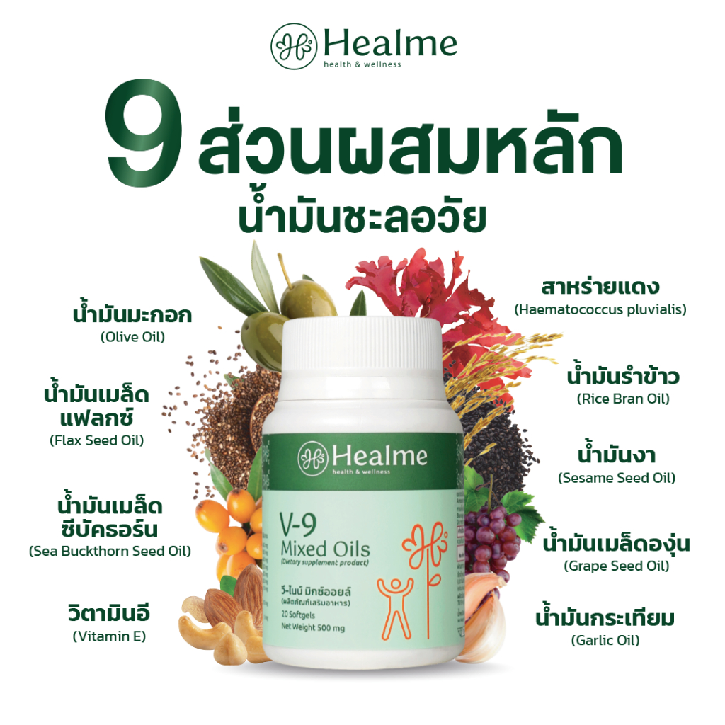 Healme V-9 Mixed Oils "น้ำมันชะลอวัย" สารต้านอนุมูลอิสระ 9 ชนิด จากธรรมชาติ