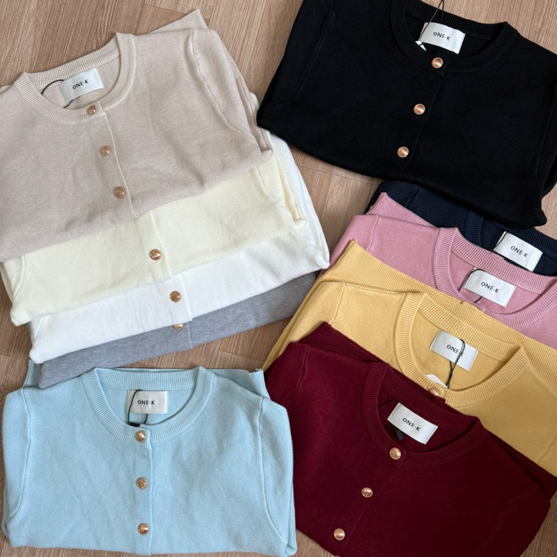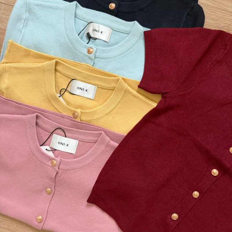 [ป้าย One K] เสื้อไหมพรมแขนสั้นทรงคอกลมกระดุมทองให้ฟีลคุณหนูสุดสุดน่ารักทุกสีเลยค่ะ