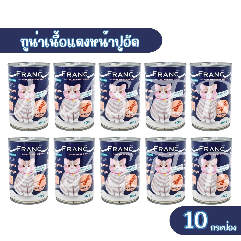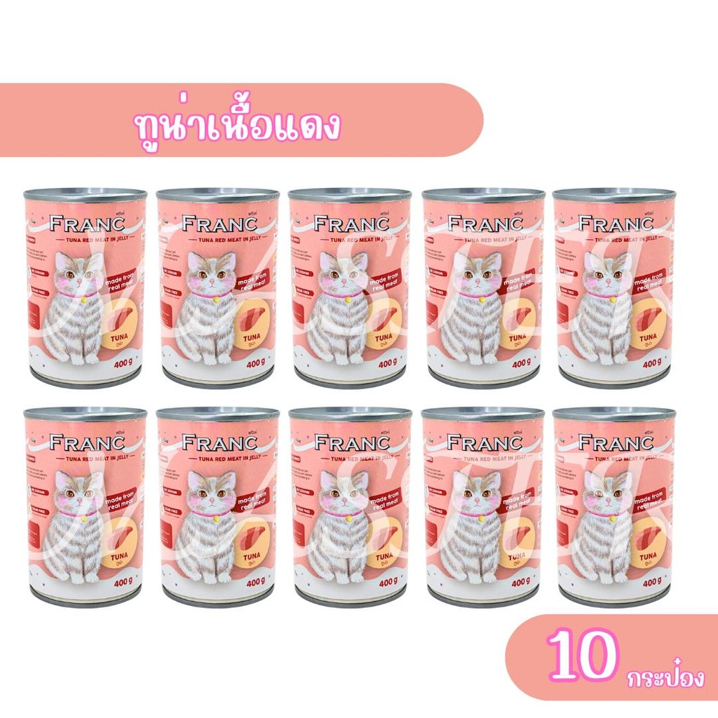 อาหารเปียกแมว อาหารแมวส่งฟรี แพ็ค 10 กระป๋อง FRANC PREMIUM เต็มกระป๋อง 400กรัม (เก็บโค้ดหน้าร้าน)