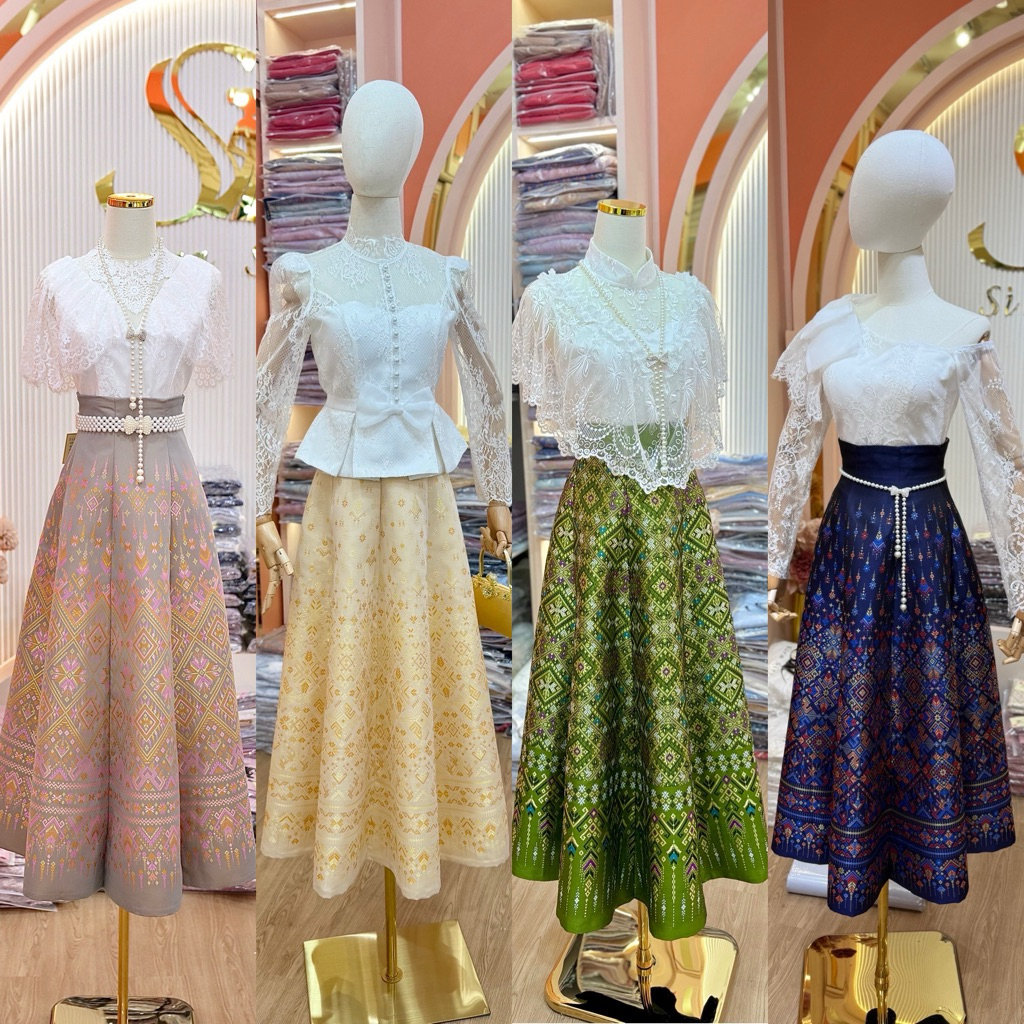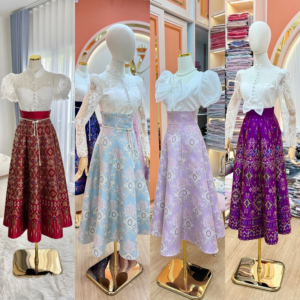 Sira Siri กระโปรงผ้าไทย ทอลายแพรวา ทรงสวิง7ชิ้น ทอเครื่อง อัดกาวอย่างดี ฝีมือช่างไทย(เฉพาะกระโปรง)