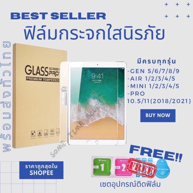 ฟิล์มกระจกนิรภัย ไอแพดGen5/6/7/8/9/10 Air1/2/3/4/5 Mini1/2/3/4/5 Pro 9.7 gen11/10 air6/7 ฟิล์มไอแพด