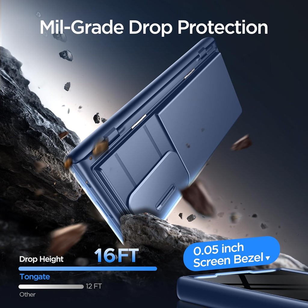 TONGATE Wallet สำหรับเคส Z Fold 7 พร้อมฟิล์มกันรอยหน้าจอความเป็นส่วนตัว [ช่องใส่การ์ด 4 ใบ] [ป้องกันการสอดแนม] ขาตั้งขนาดใหญ่ในตัวและฝาสไลด์สำหรับกล้อง Z7 เคสโทรศัพท์กันกระแทกสีน้ำเงิน