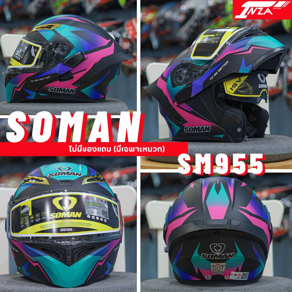 หมวกกันน็อคเปิดคาง SOMAN HELMETS SM955-S แว่นด้านใน 2 ชั้น (ไม่มีของแถม)
