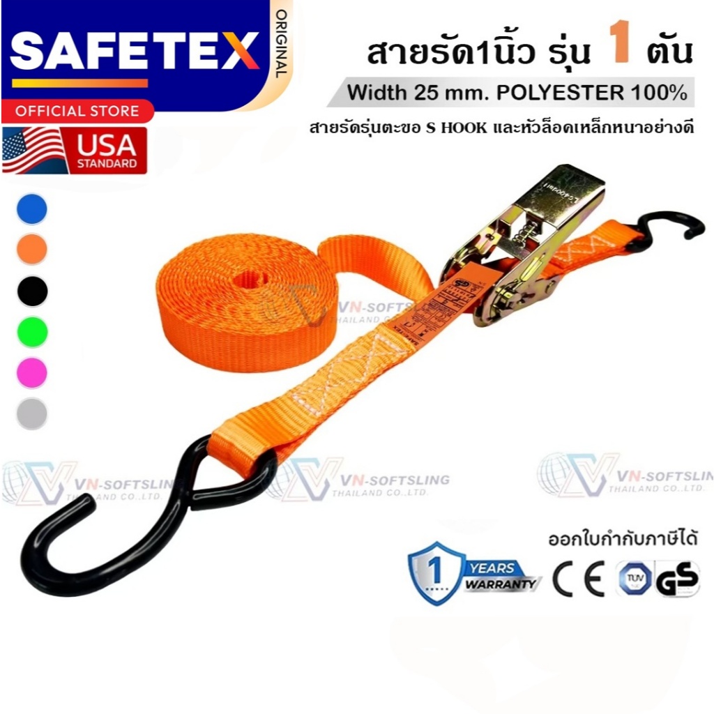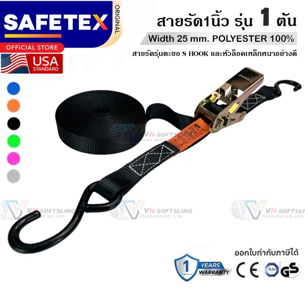 SAFETEX USA สายรัดก๊อกแก๊ก 1 นิ้ว 1 ตัน (รุ่นตะขอเอส) สายรัดของ สายรัดมอไซด์ สายรัดอเนกประสงค์