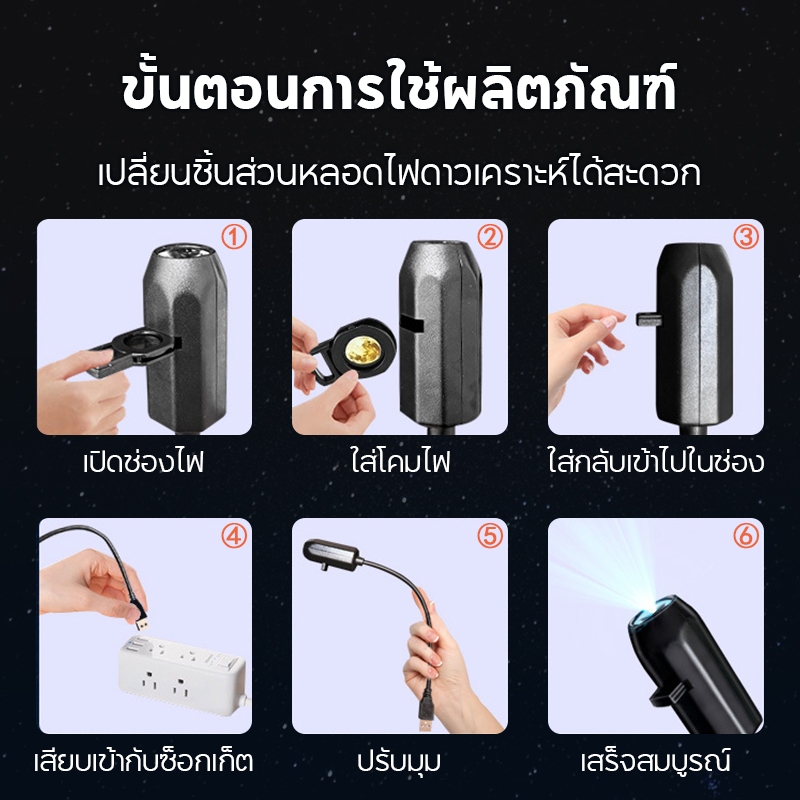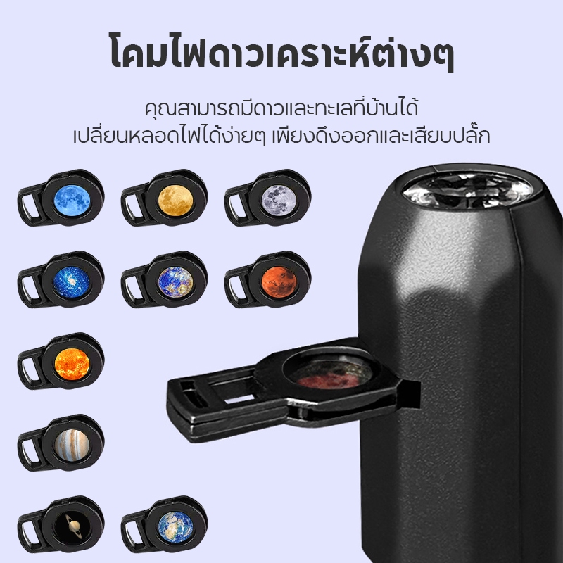 โคมไฟโปรเจคเตอร์ดวงจันทร์ เปลี่ยนลายได้ 10 แบบ ชาร์จ USB ดีไซน์น่ารัก สำหรับตกแต่งห้องและงานสังสรรค์คริสต์มาส