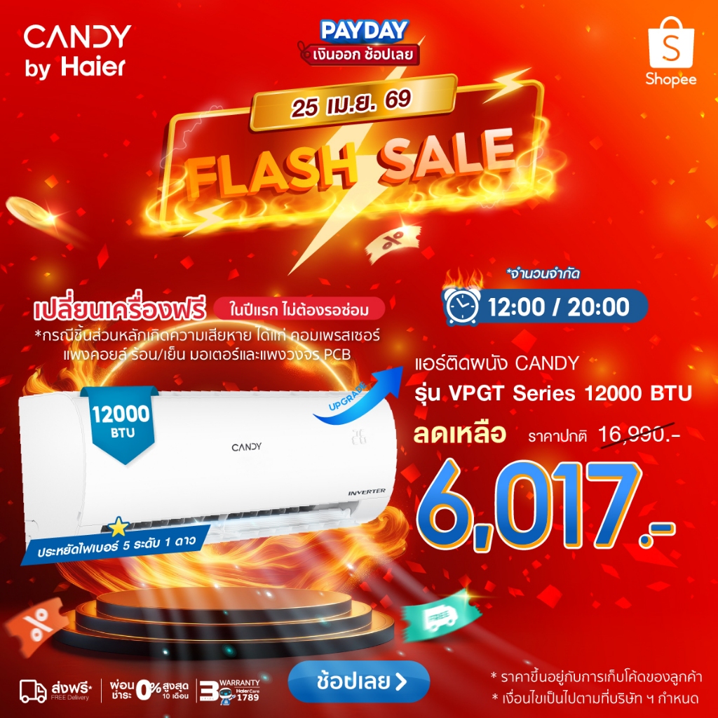 [Presale23200BTUเข้า24เม.ย]CANDY เครื่องปรับอากาศติดผนัง อินเวอร์เตอร์ รุ่น VPCT/VPGT Series
