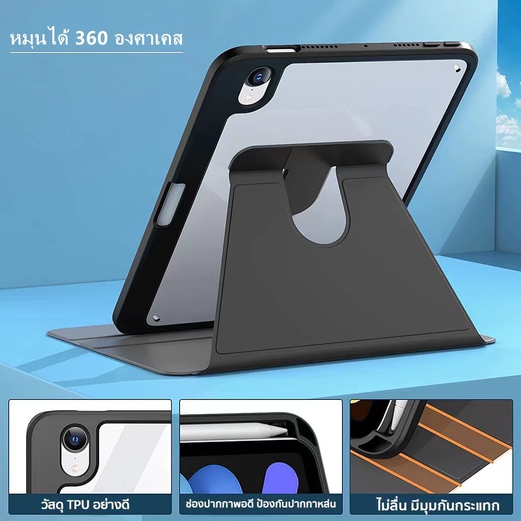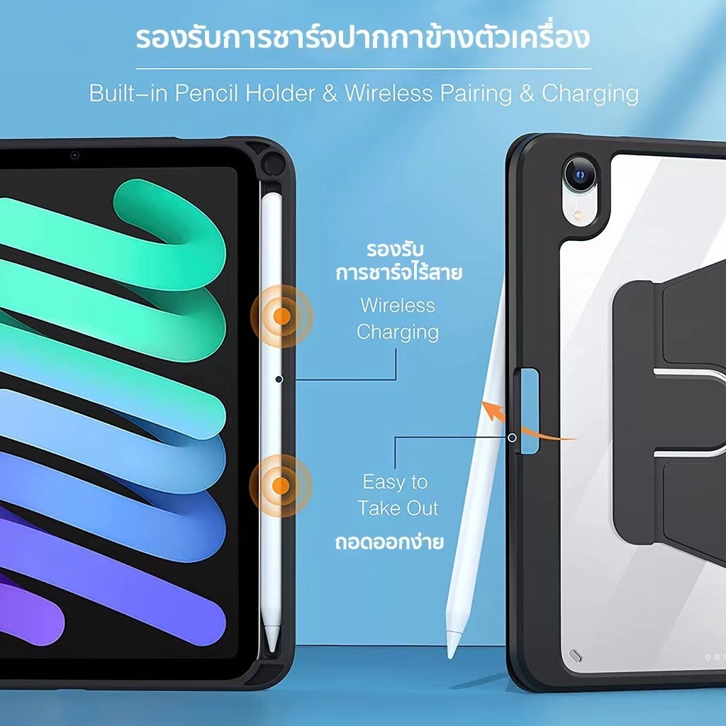 Jamjake ปกหนังสือ เคสไอแพด หมุนได้ 360° for Air6 Air5/4 Gen10 Gen9/8 Pro11 วัสดุอะคริลิก เคสไอแพดใส
