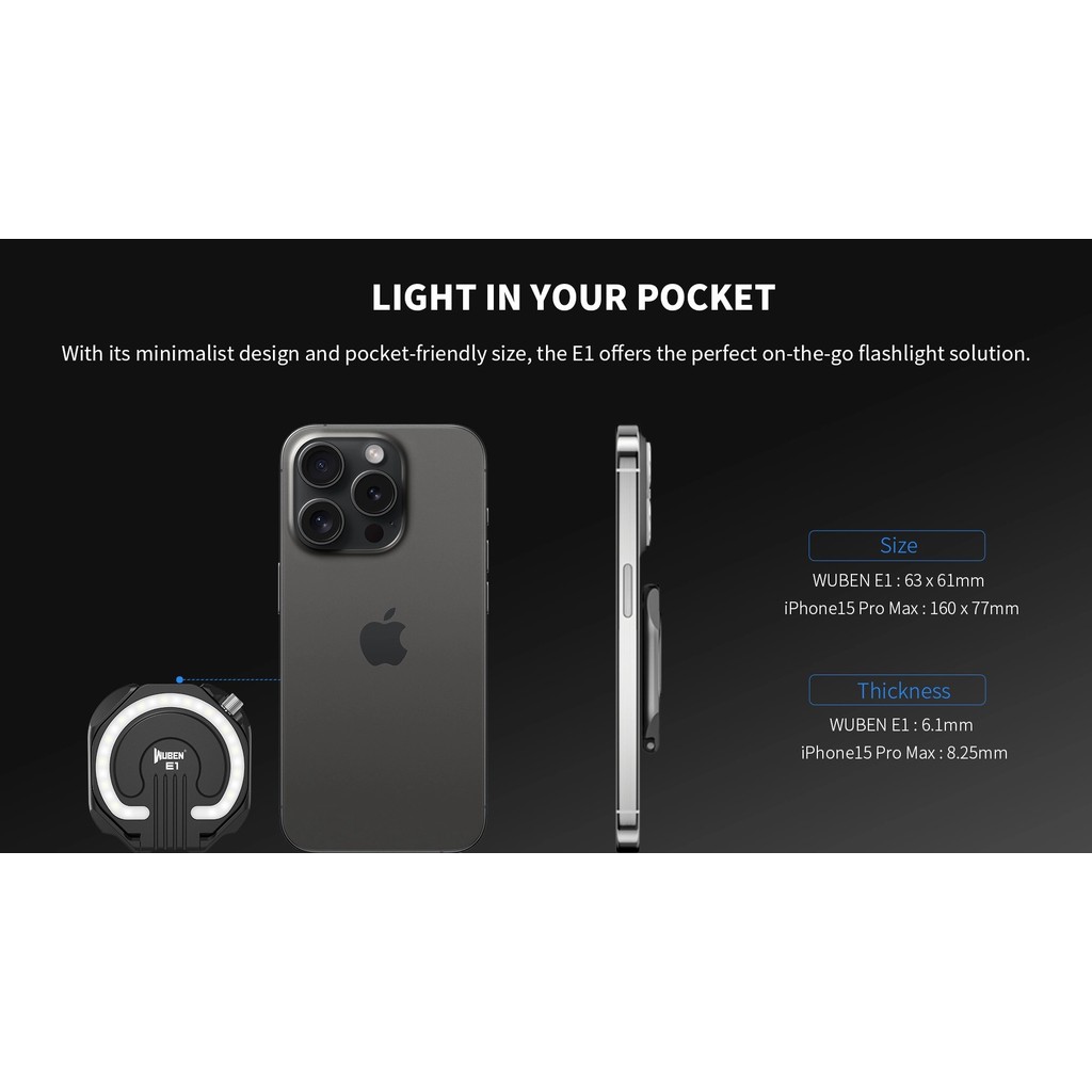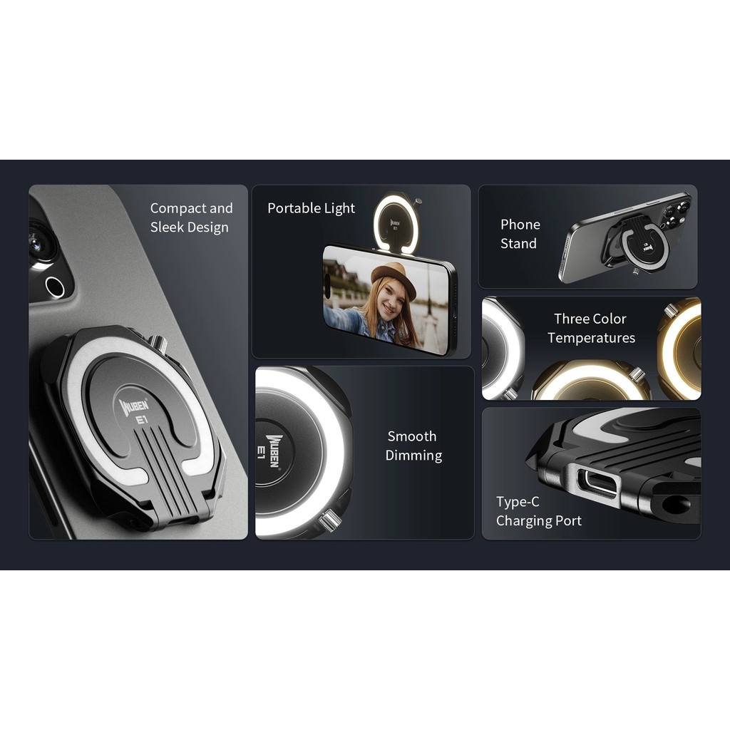 Wuben E1 EDC ไฟฉายขนาดเล็ก, ชาร์จ 300 Lumens LED Selfie Light แหวนแบบพกพาสําหรับโทรศัพท์, 3 โหมดแสงไฟฉายแม่เหล็กพ็อกเก็ตสําหรับกลางคืน Camping, Emergenicie