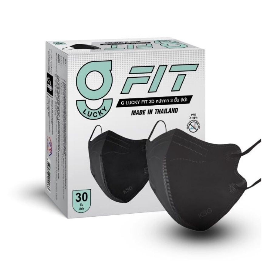 G LUCKY FIT 3D แบบกล่อง 30 ชิ้น หน้ากาก 3 ชั้น รูปทรง 3D สำหรับผู้ใหญ่ ป้องกันไวรัสและแบคทีเรีย หายใจสะดวก