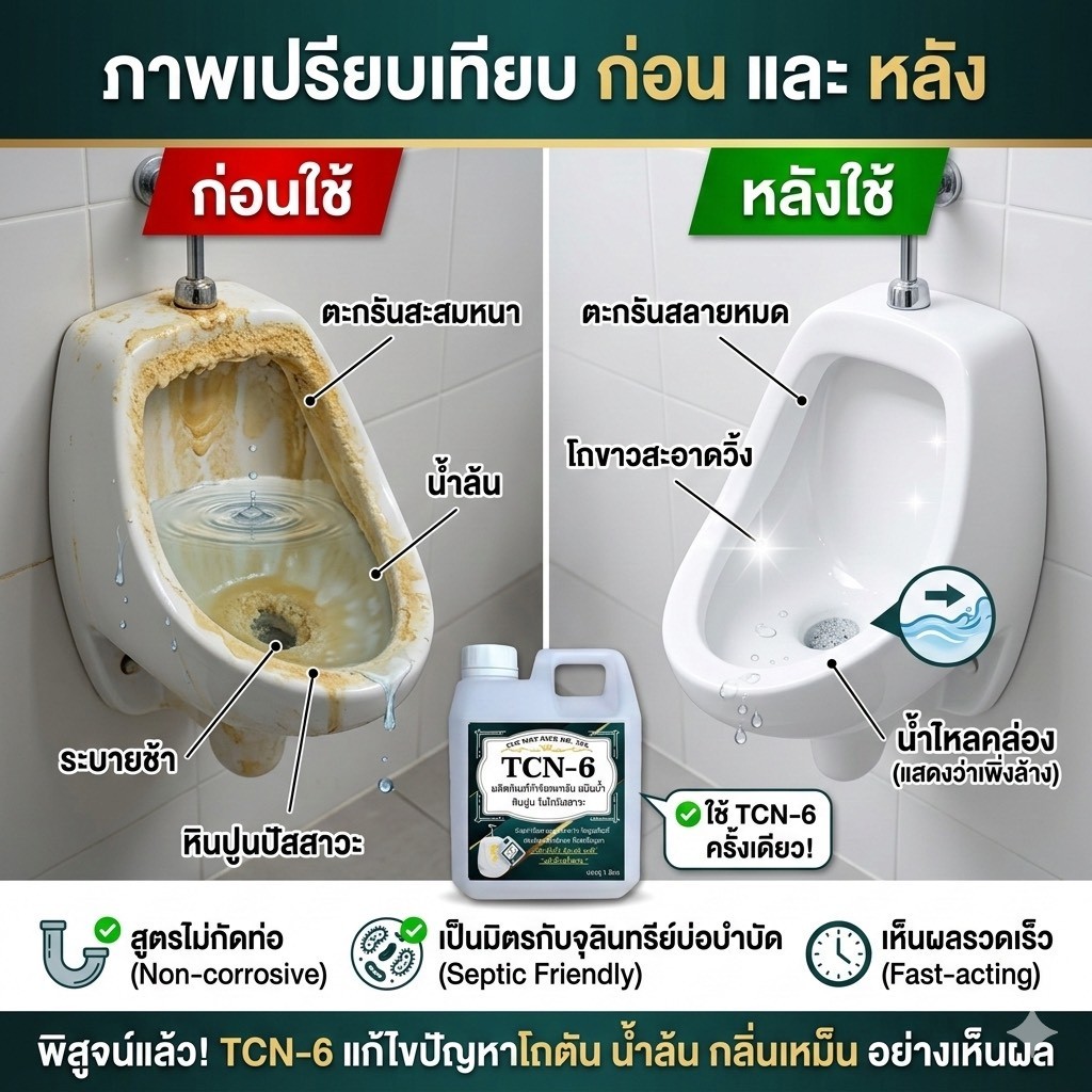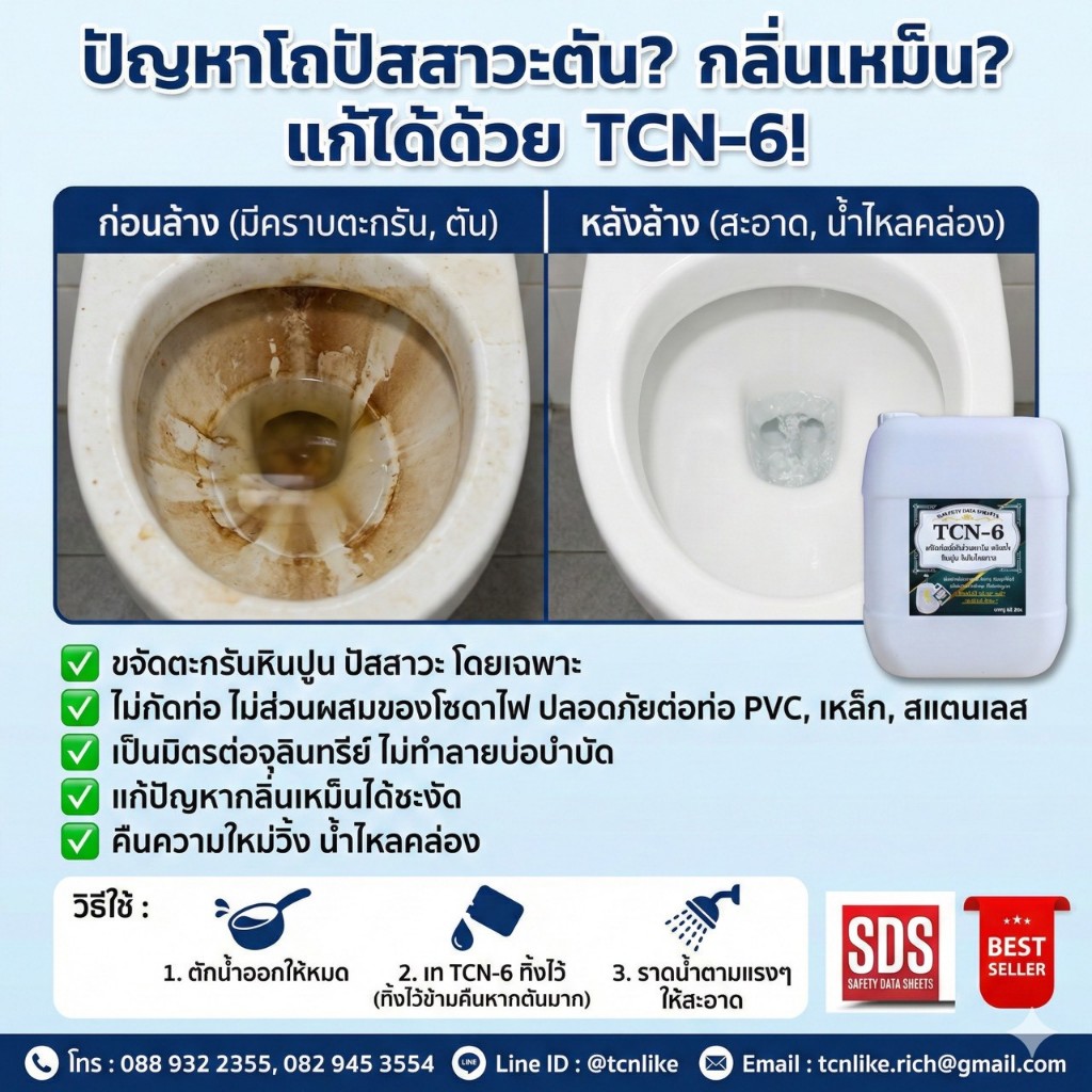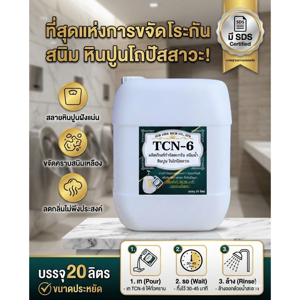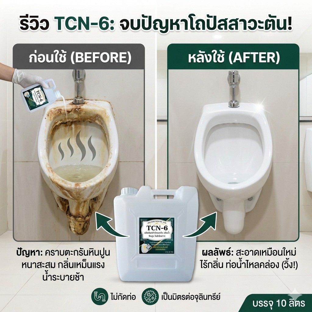 TCN6 (10 ลิตร) น้ำยากำจัดตะกรัน สนิมน้ำ หินปูน ในโถปัสสาวะ ช่วยกำจัดตะกรัน ที่เป็นสาเหตุให้ท่อตัน และส่งกลิ่นเหม็น