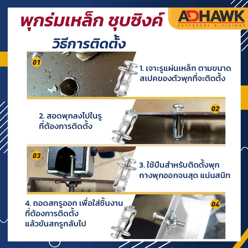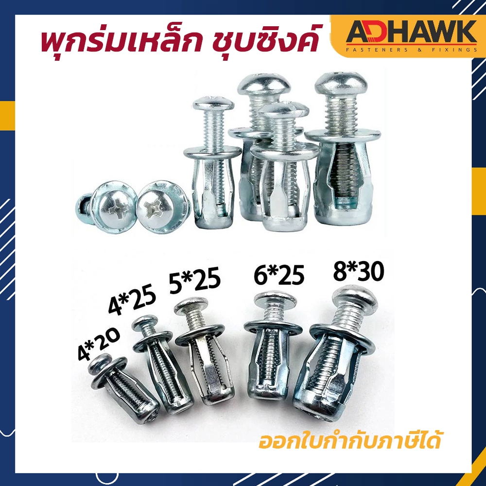 พุกร่ม ชุบซิงค์ ขนาดM4,M5,M6,M8 ยิงเหล็กได้ ใช้กับแผ่นเหล็กกลวง, แผ่นอลูมิเนียมกลวง