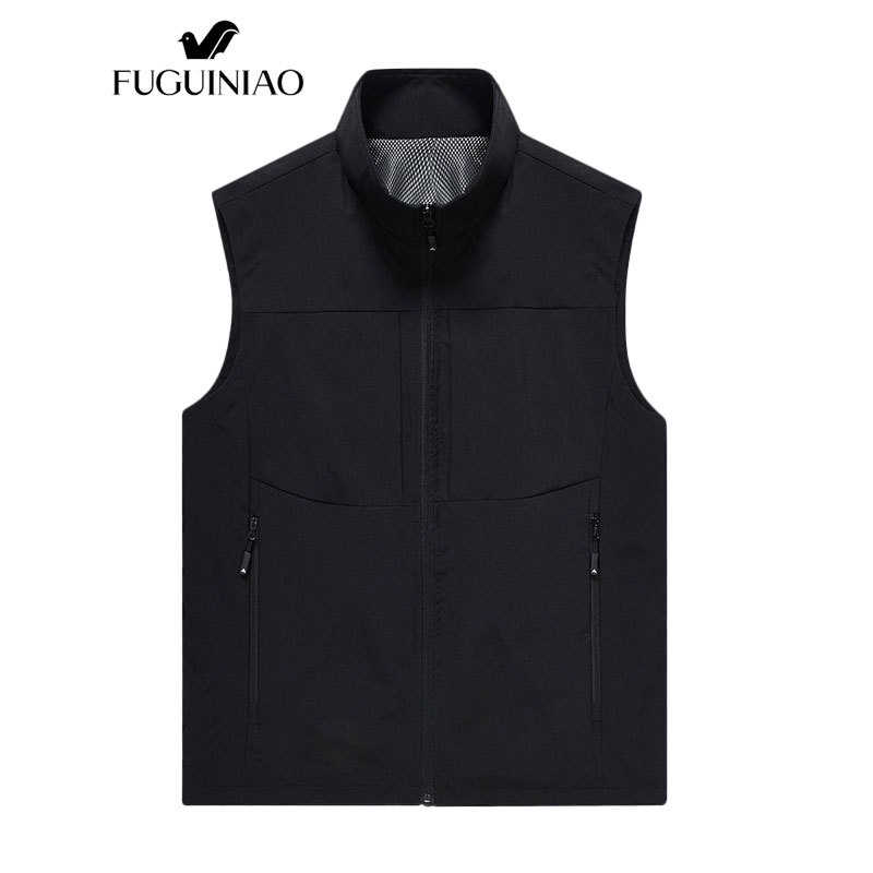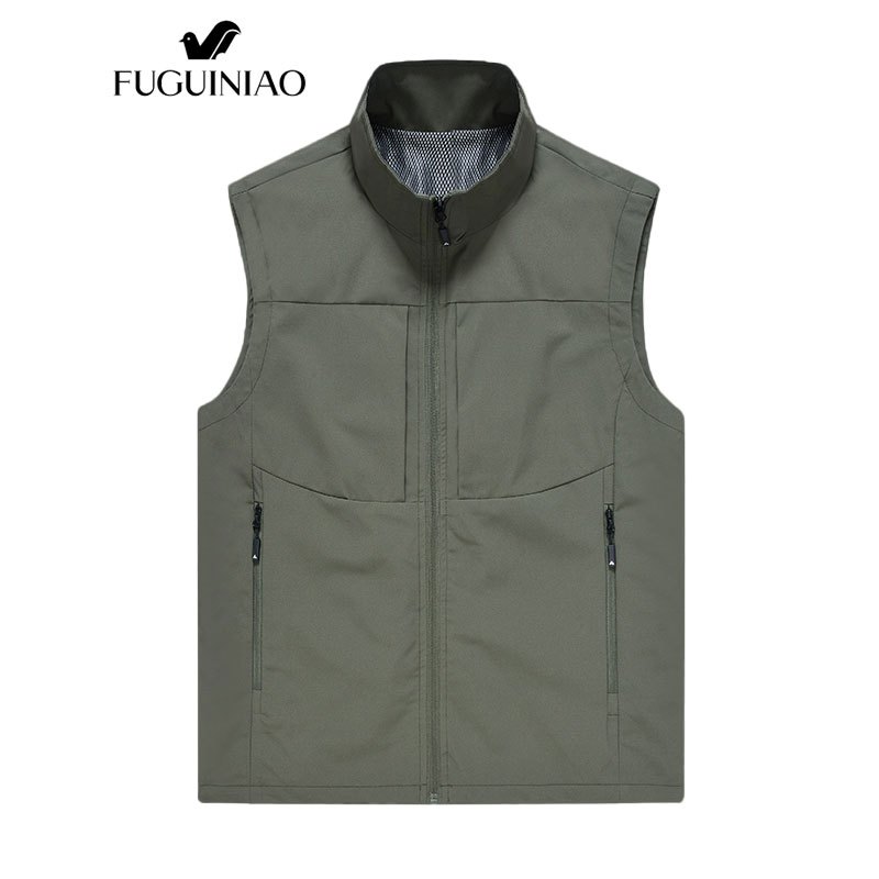 ฟูเกียว ฤดูใบไม้ผลิและฤดูใบไม้ร่วงกลางแจ้งสบายๆเสื้อกั๊กผู้ชายหลายกระเป๋ายืนขึ้นปกตาข่ายกีฬาเสื้อกล้าม