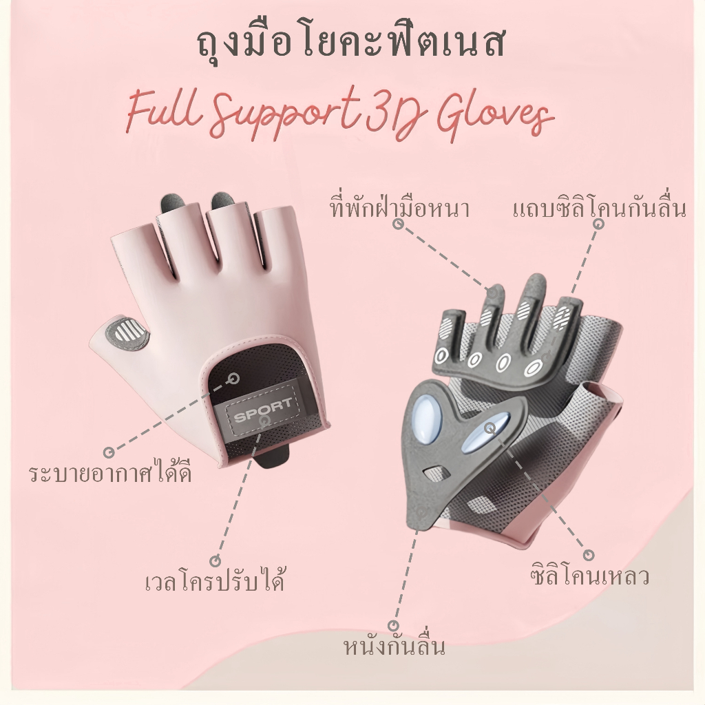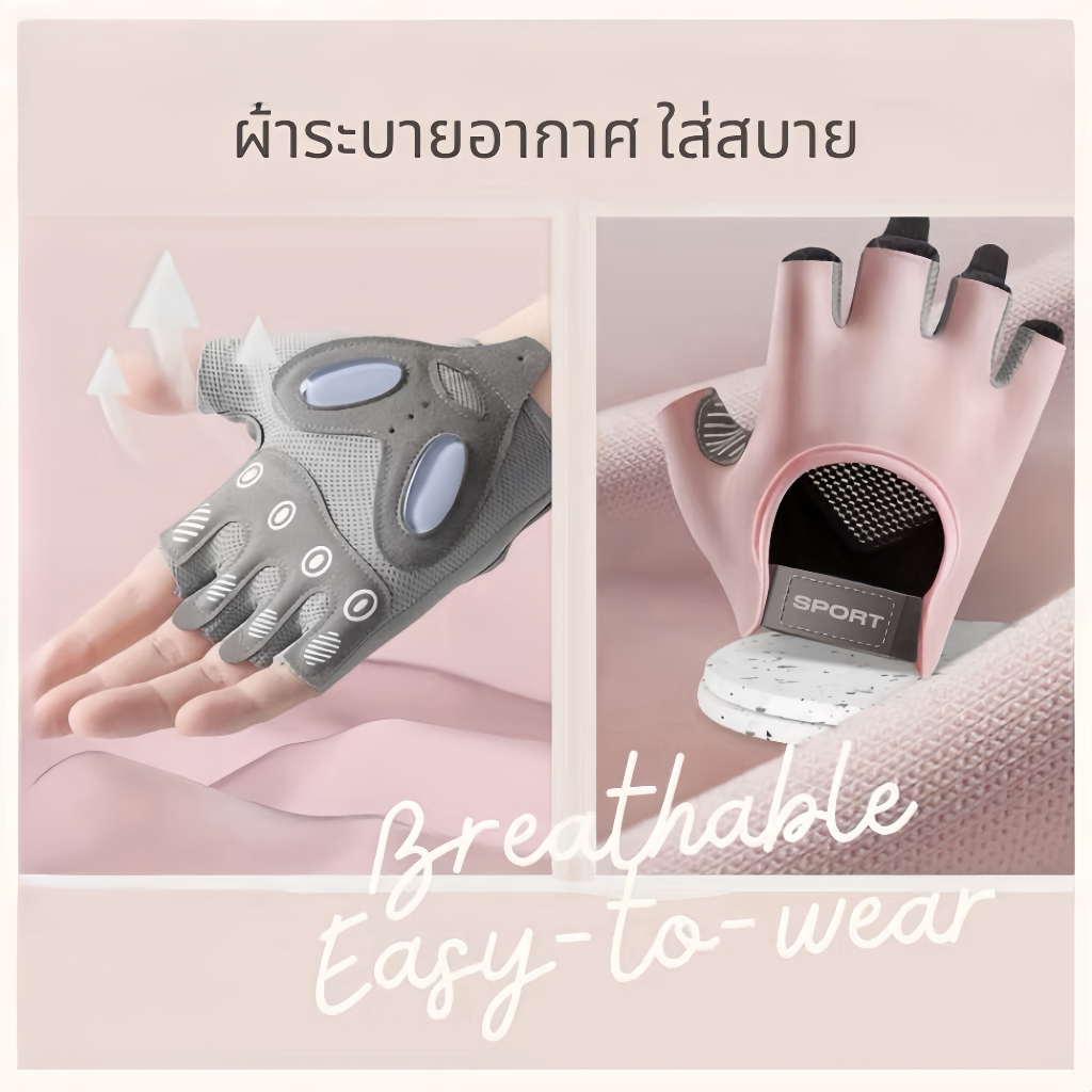 Sport ถุงมือดัมเบล ครึ่งนิ้ว ระบายอากาศ ใช้ได้กับฟิตเนส yoga ปั่นจักรยาน ยกน้ําหนัก ออกกําลังกายกีฬา